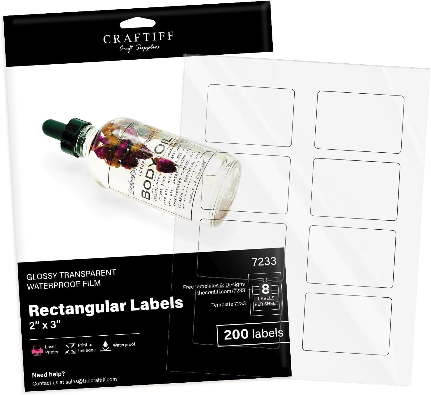 2×3 inch Clear Rectangle Stickers Labels Glossy Transparent for Laser Printer, Pack of 200, Printable Vinyl Sheets for Packaging Address Mail Business Craftiff