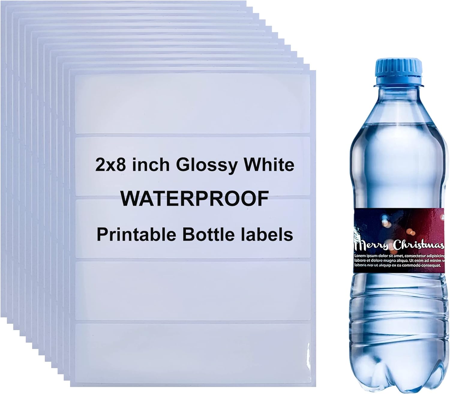 75 Labels 2″×8″ Printable Glossy White Water Bottle Labels, Waterproof Vinyl Stickers Blank Wraparound Rectangle Sheet for Inkjet/Laser Printer