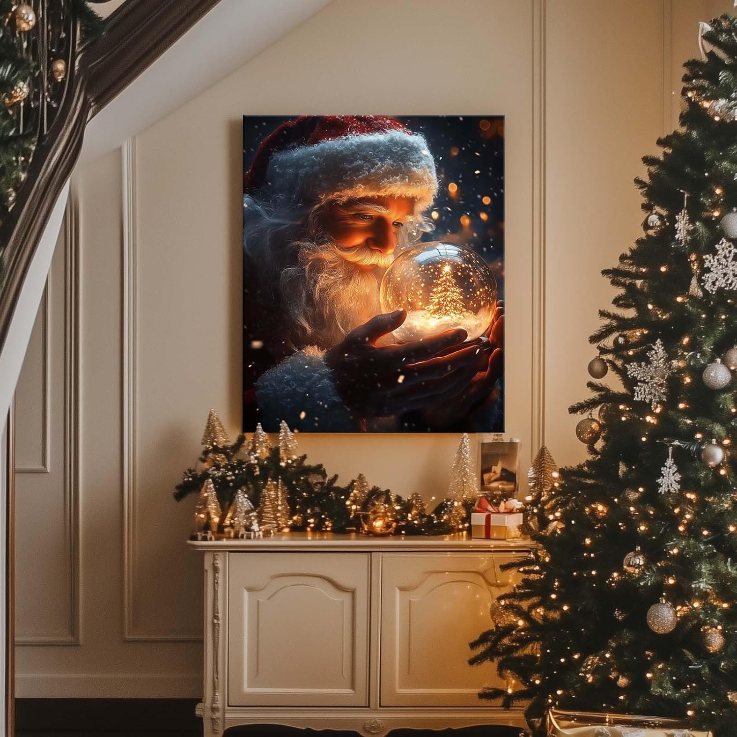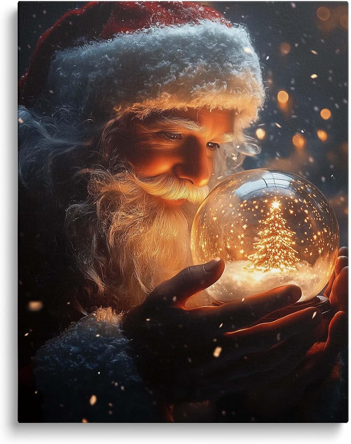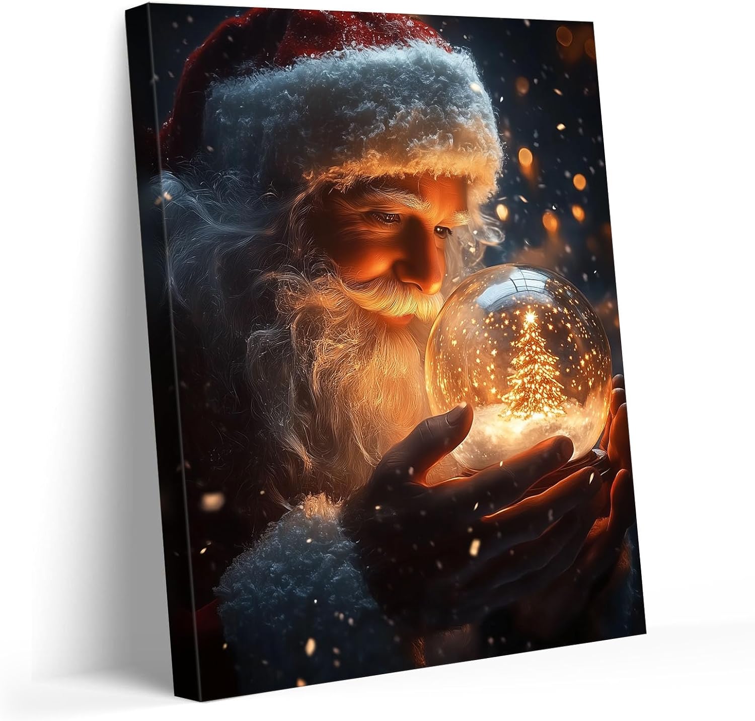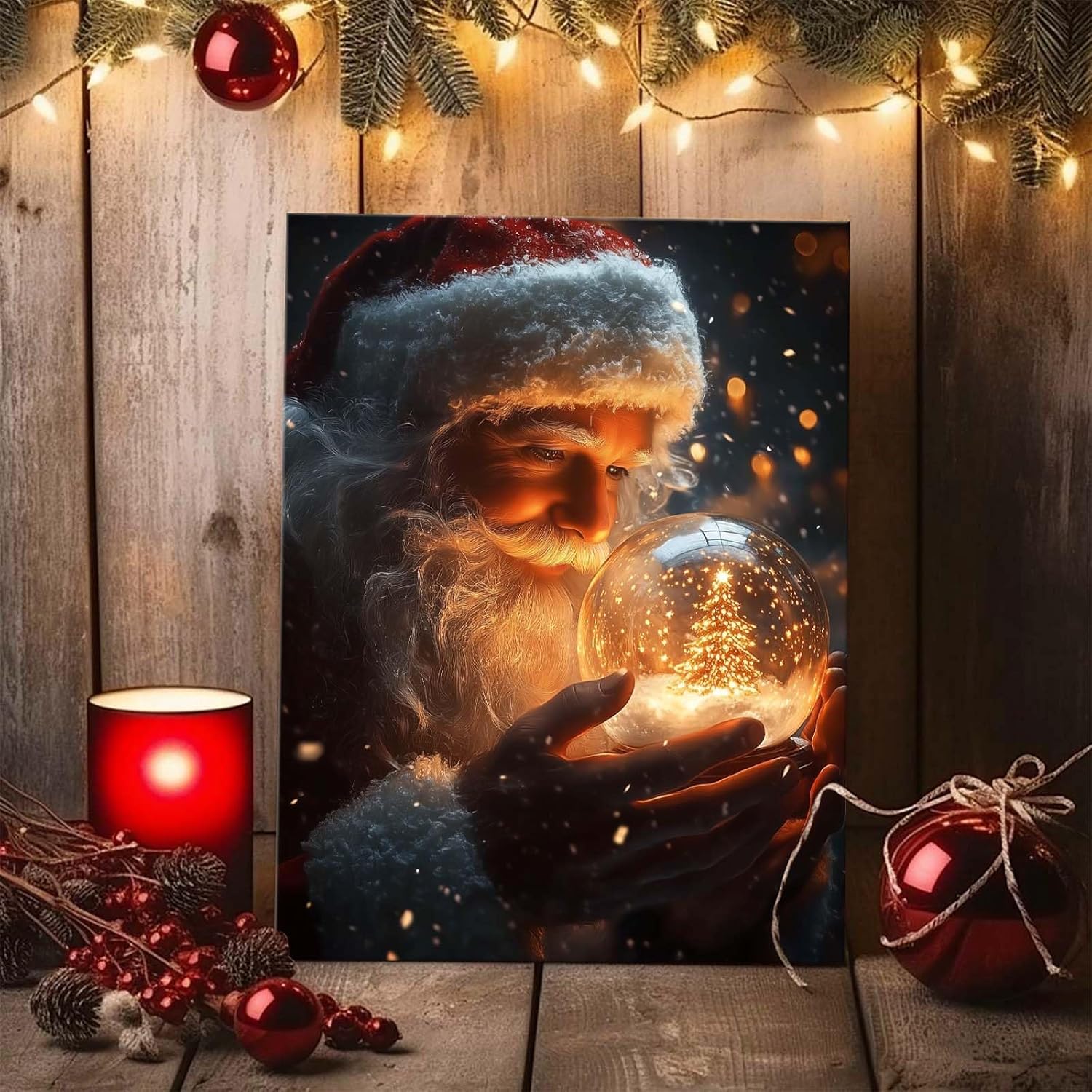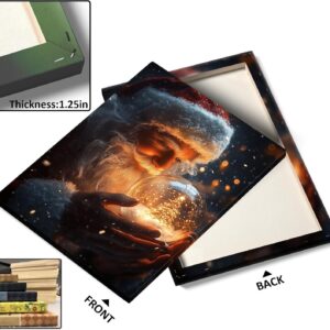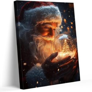 B.B.F MAKE Christmas Canvas Framed Wall Art for Living Room Decor Classical Oil Painting Santa Claus & Crystal Ball Canva Poster Prints Wall Decoration Home Office Bedroom Bathroom Decor, 16x20inch