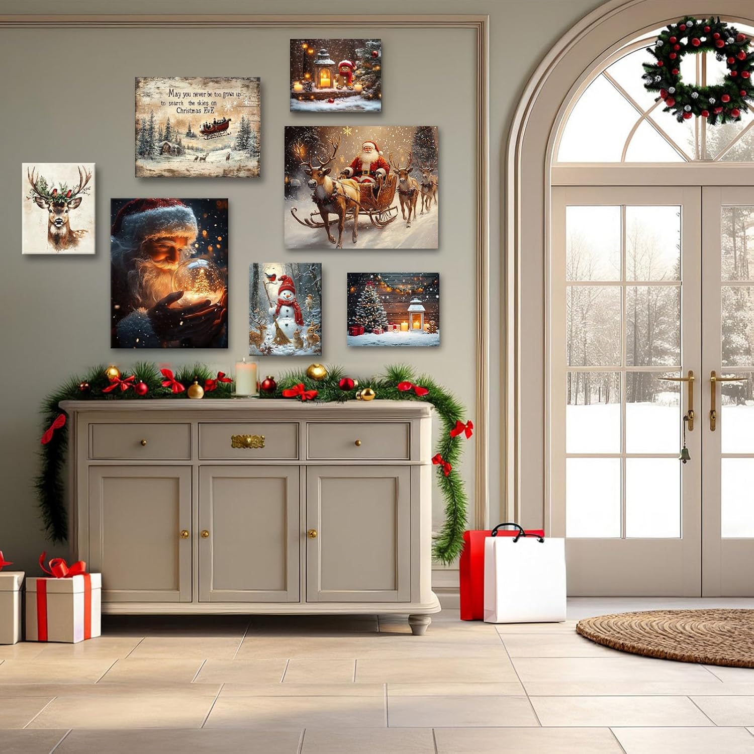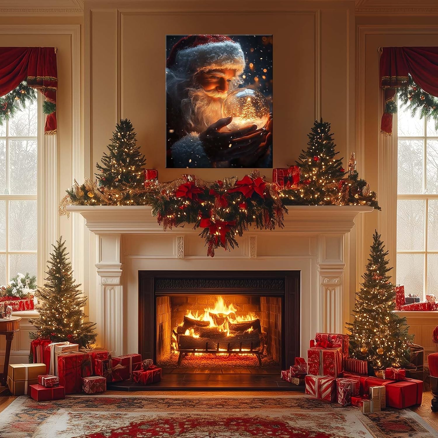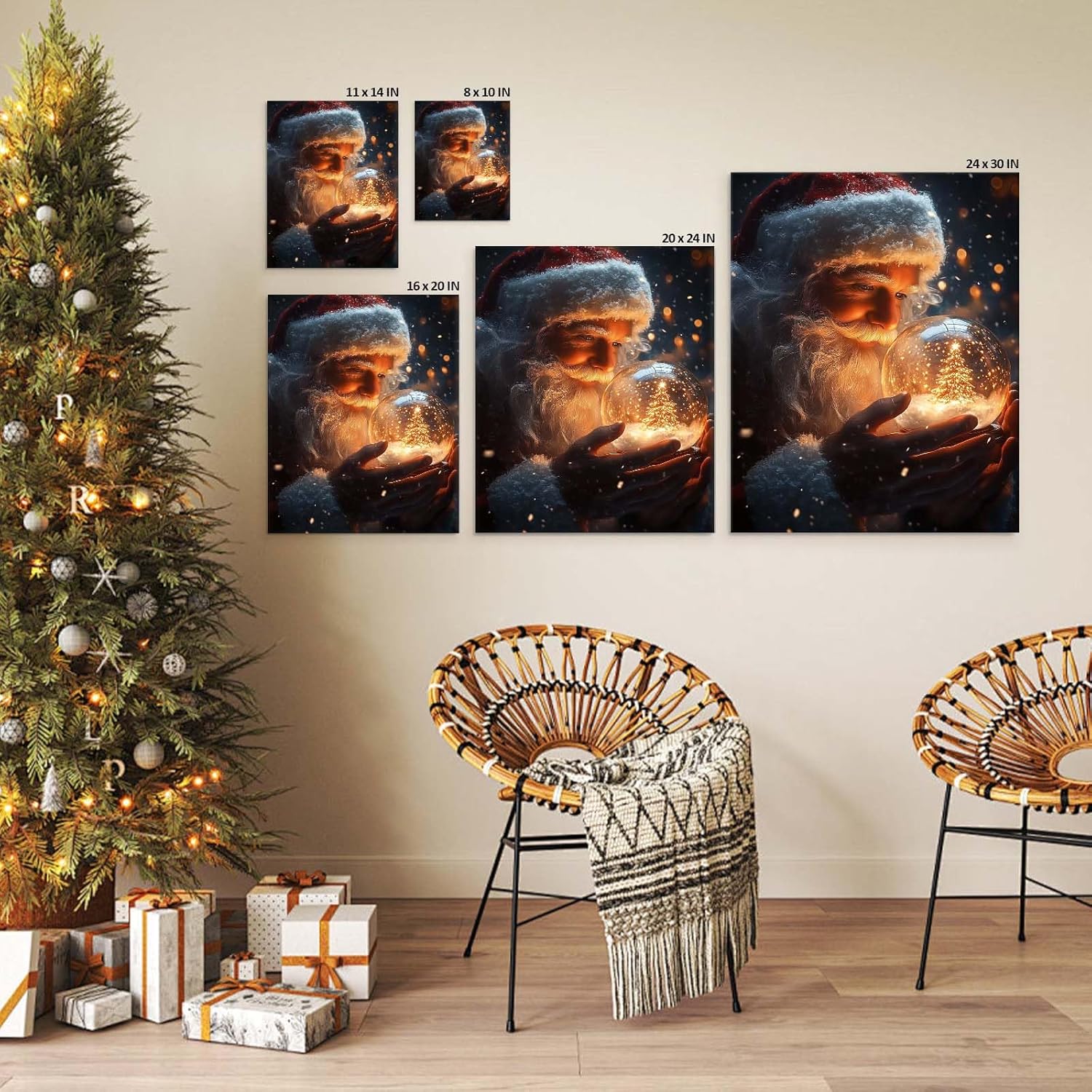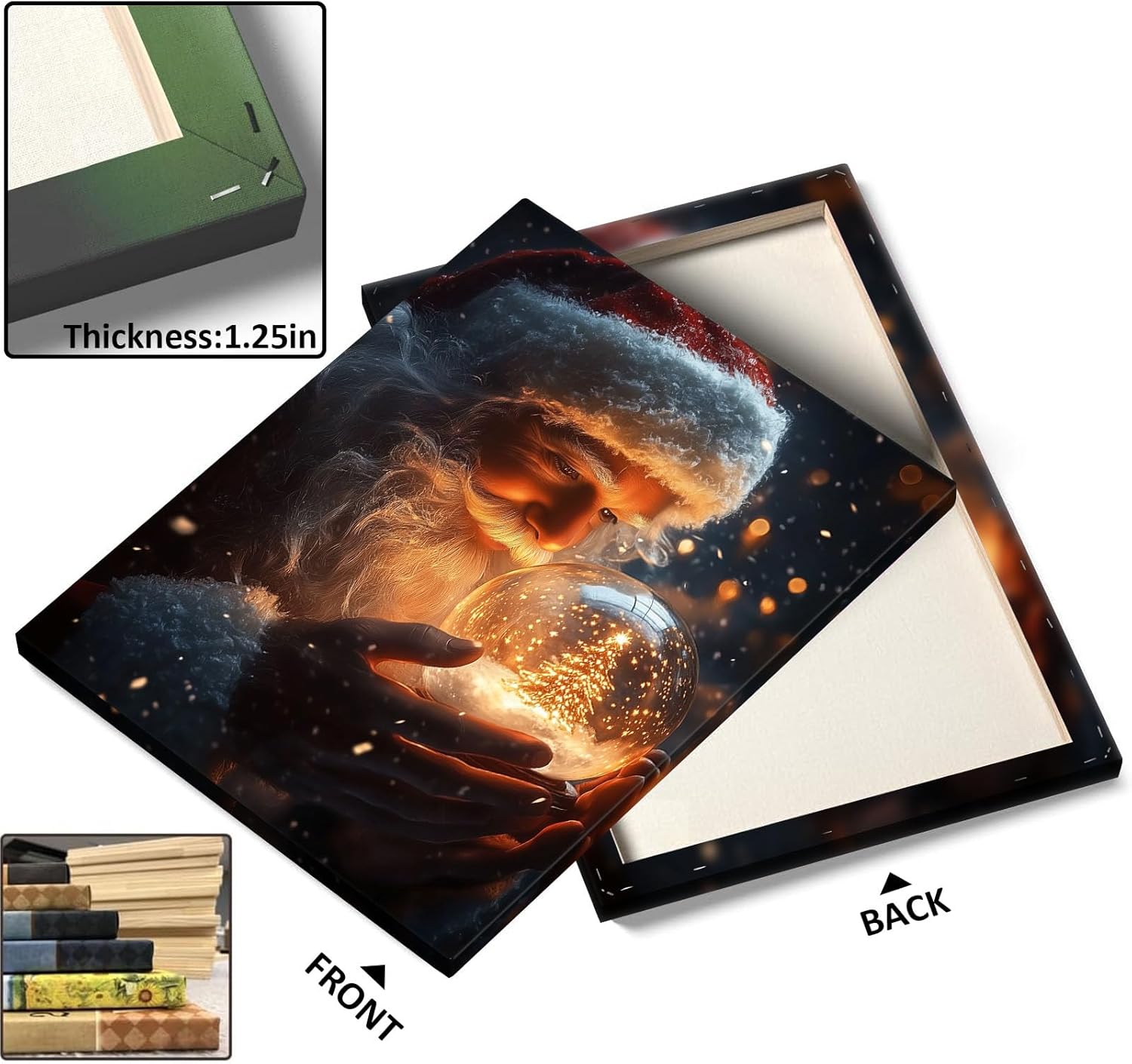 B.B.F MAKE Christmas Canvas Framed Wall Art for Living Room Decor Classical Oil Painting Santa Claus & Crystal Ball Canva Poster Prints Wall Decoration Home Office Bedroom Bathroom Decor, 16x20inch
