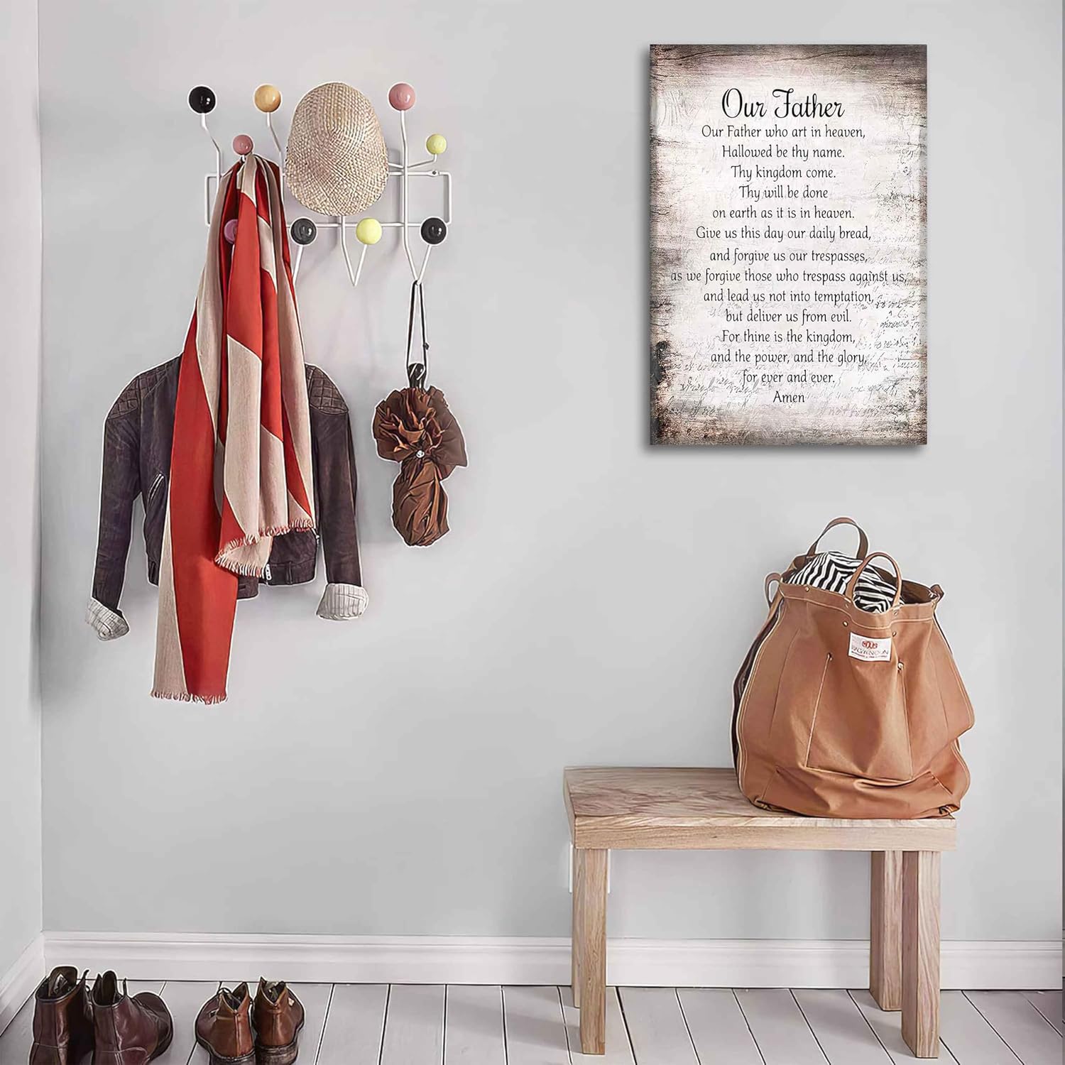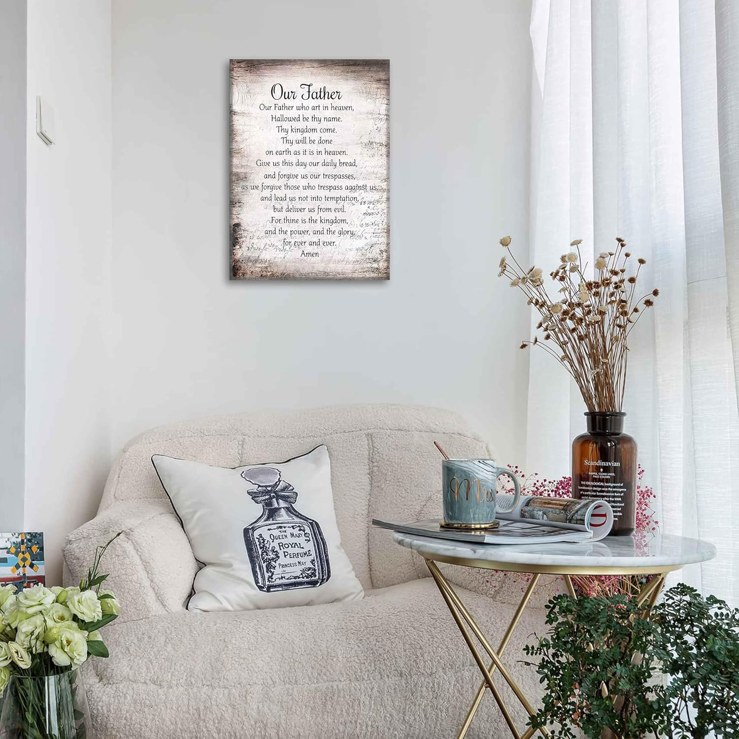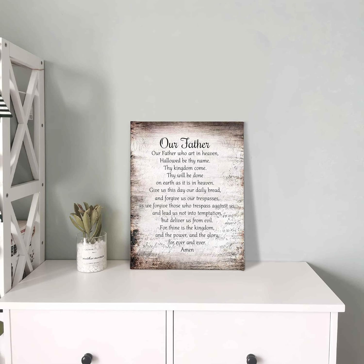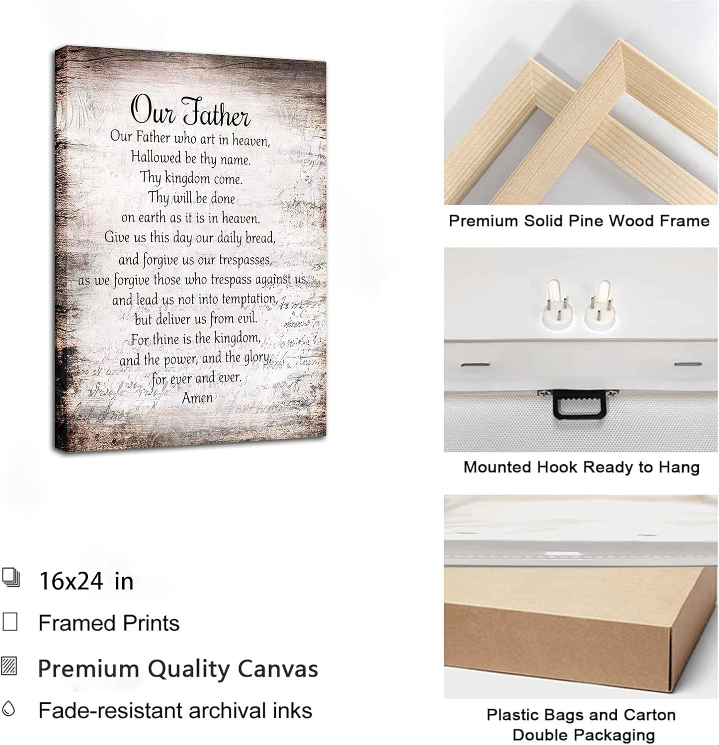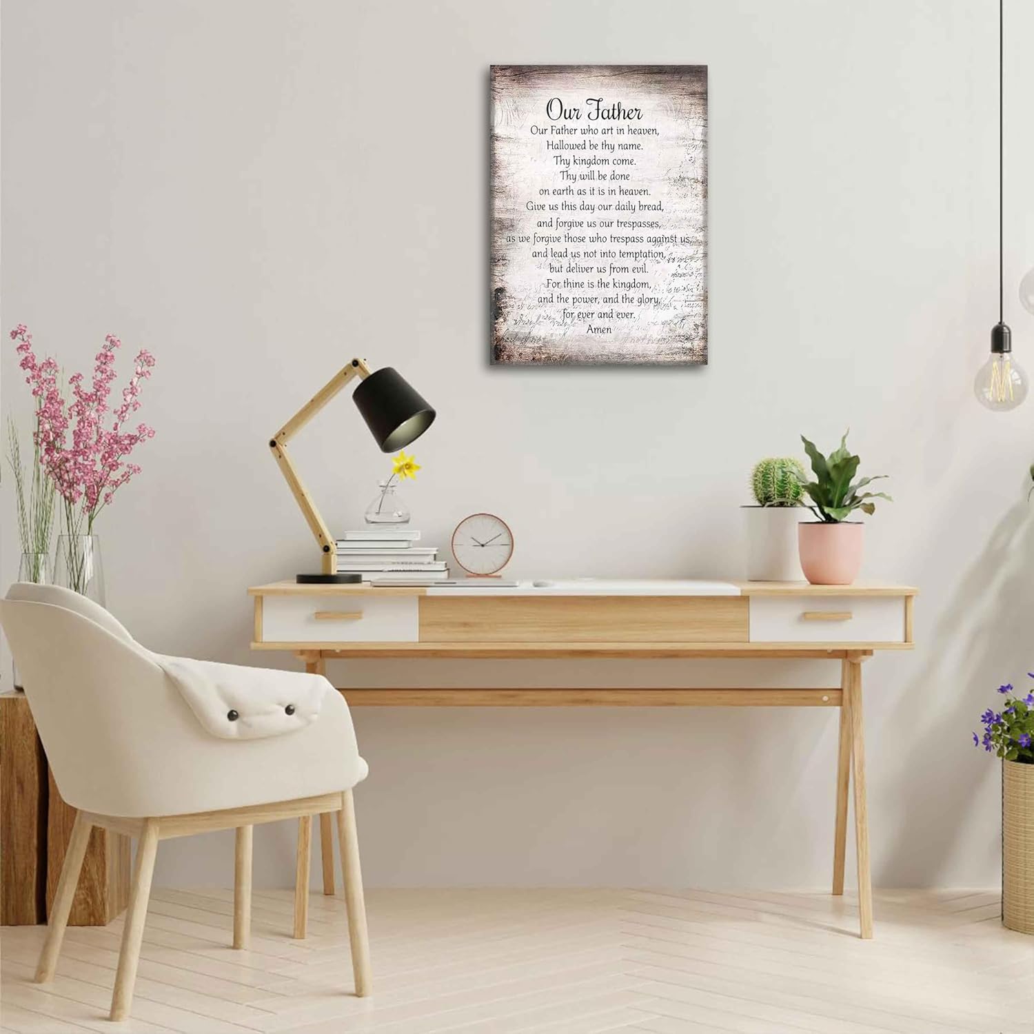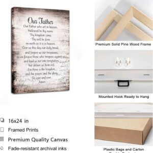 Bible Verse Canva Wall Art Our Father Prayer Poster Picture The Lords Prayer Print Inspirational Quotes Painting for Spiritual Gift Christian Office Church Wall Decor Framed
