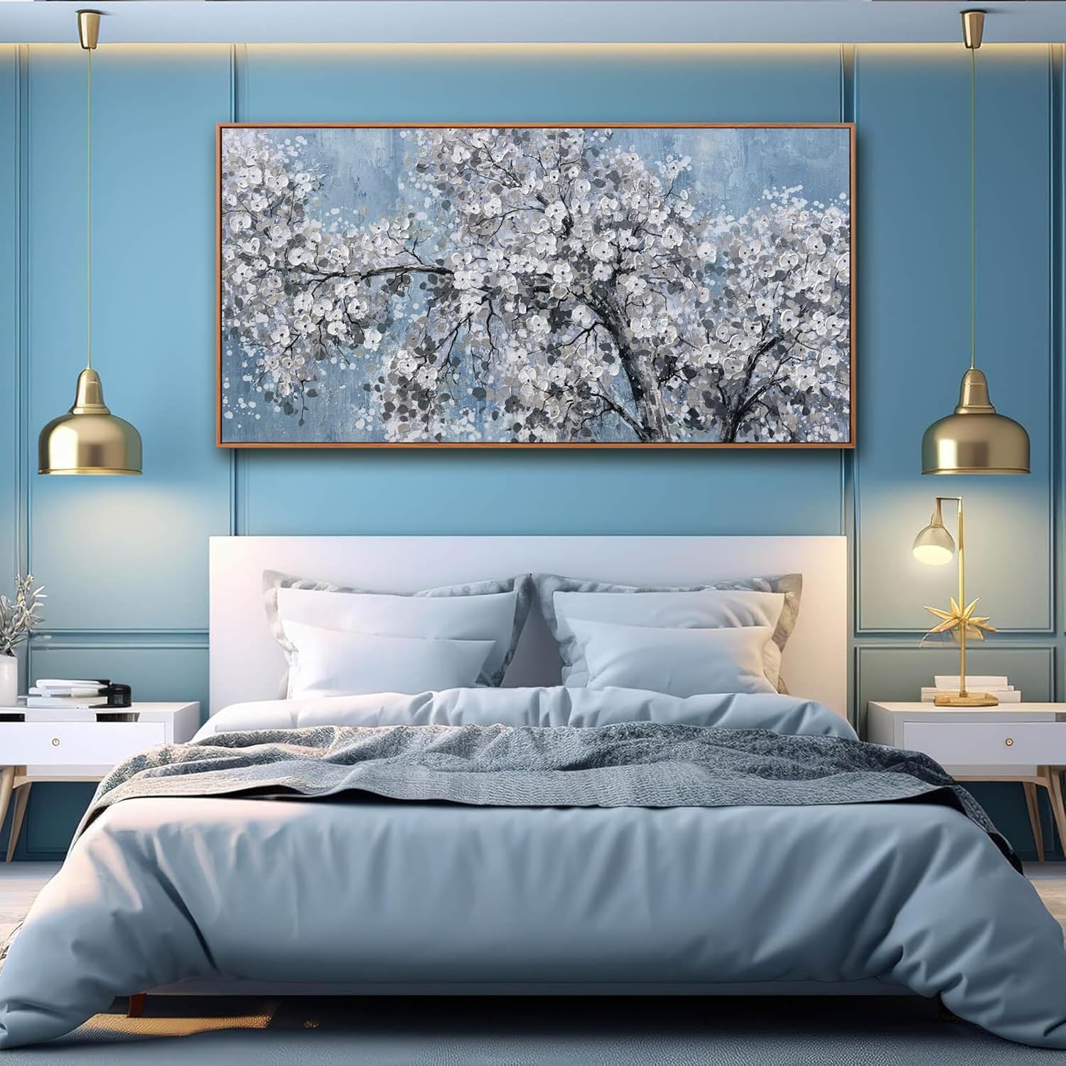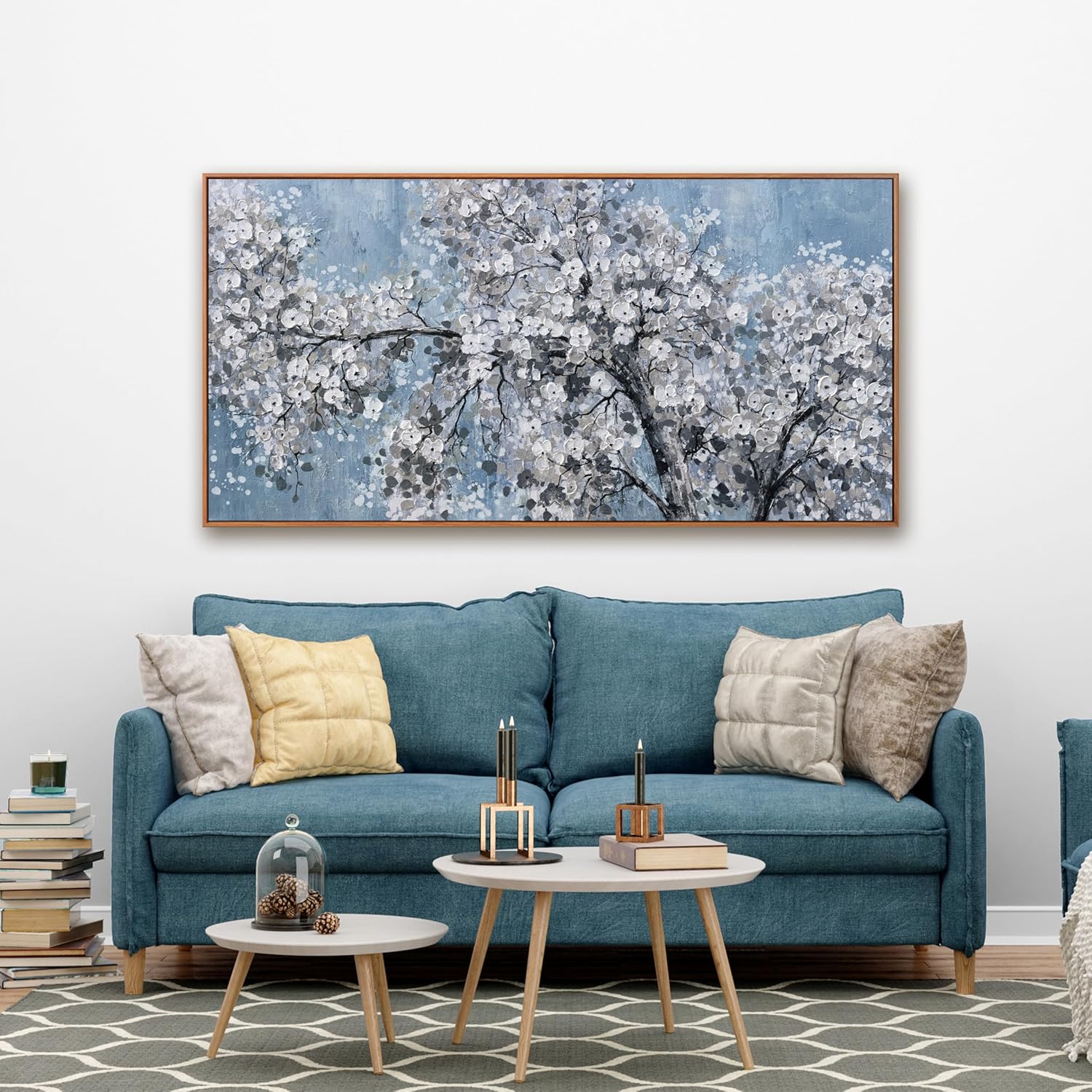 Botanical Wall Art Print Paintings Gray And White Abstract Tree Flower Landscape Home Prints Decor Framed Ready To Hang For Living Room Bedroom And Office Home Kitchen Artwork 20″×40″