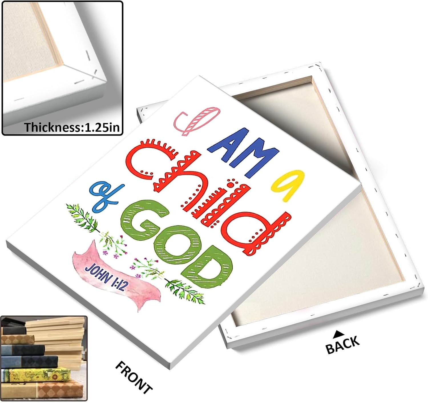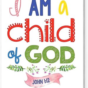 Christian Canvas Wall Art, I Am a Child of God Inspirational Quote Pictures Print, Religious Wall Painting Decor for Home, Church, and Office, John 1:12 Bible Verse Framed Artwork 24″ x 30″