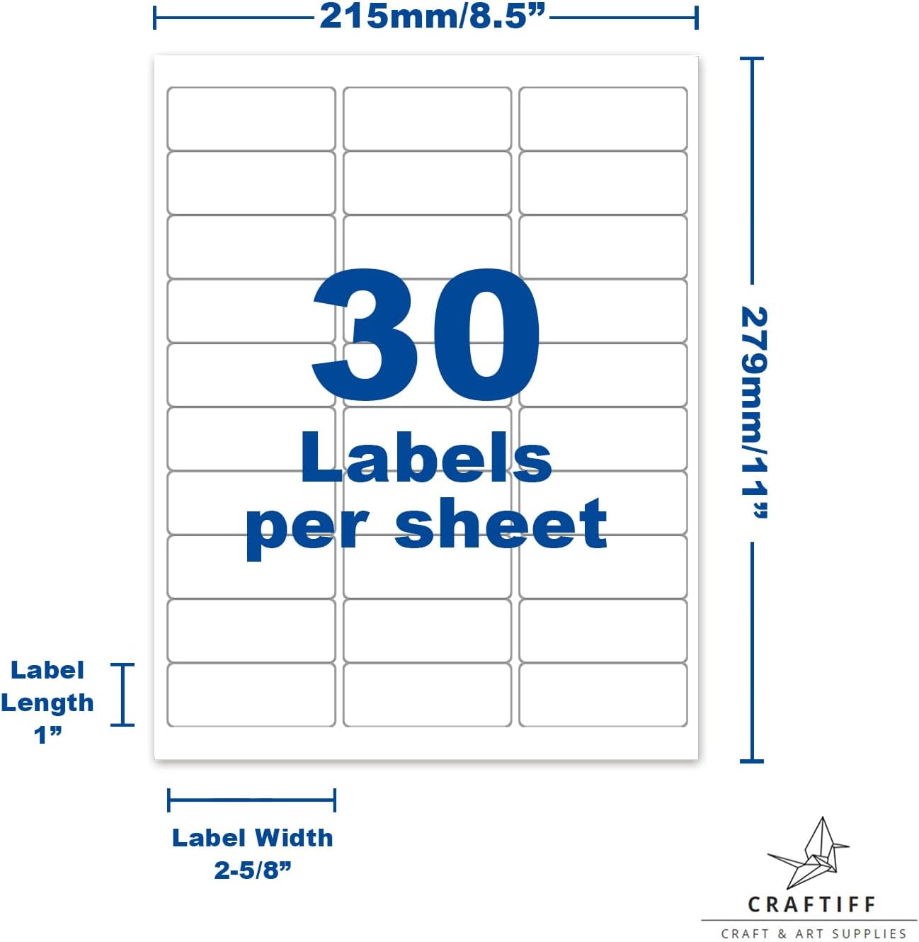 Clear Address Labels 1 x 2 5/8 inch Stickers Paper Glossy Transparent for Laser Printers. Pack of 750, Printable Vinyl Blank for Mail and Home Craftiff