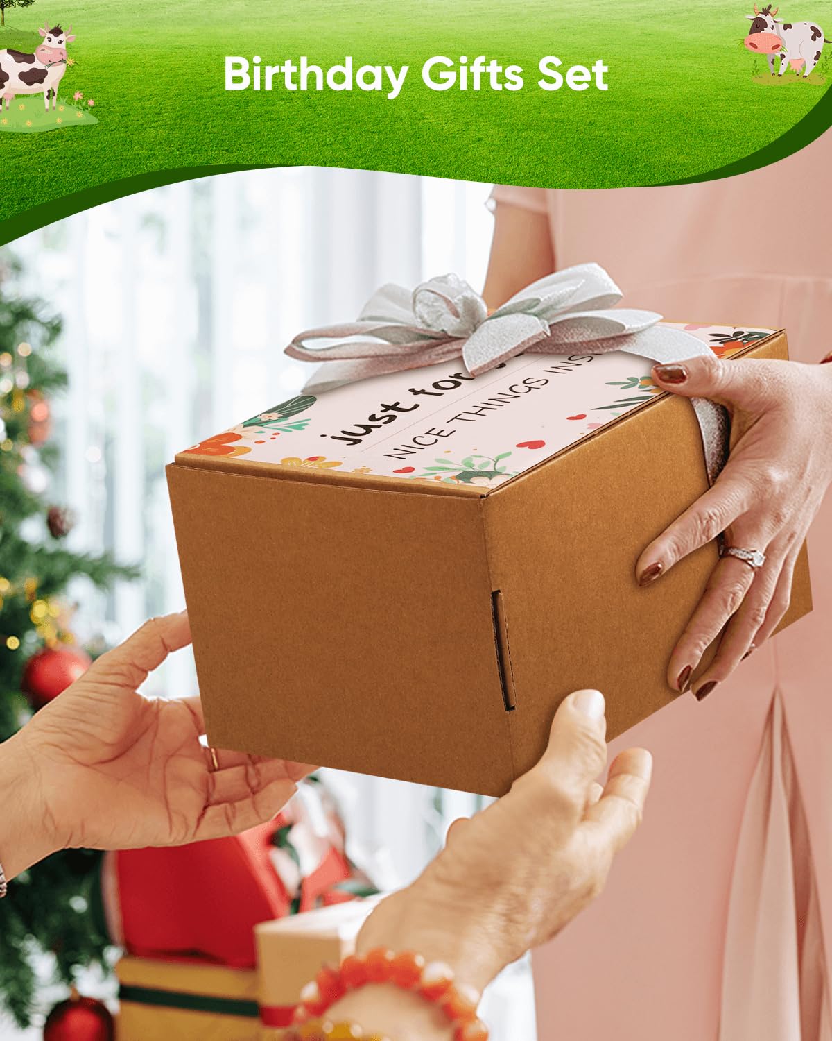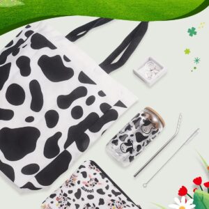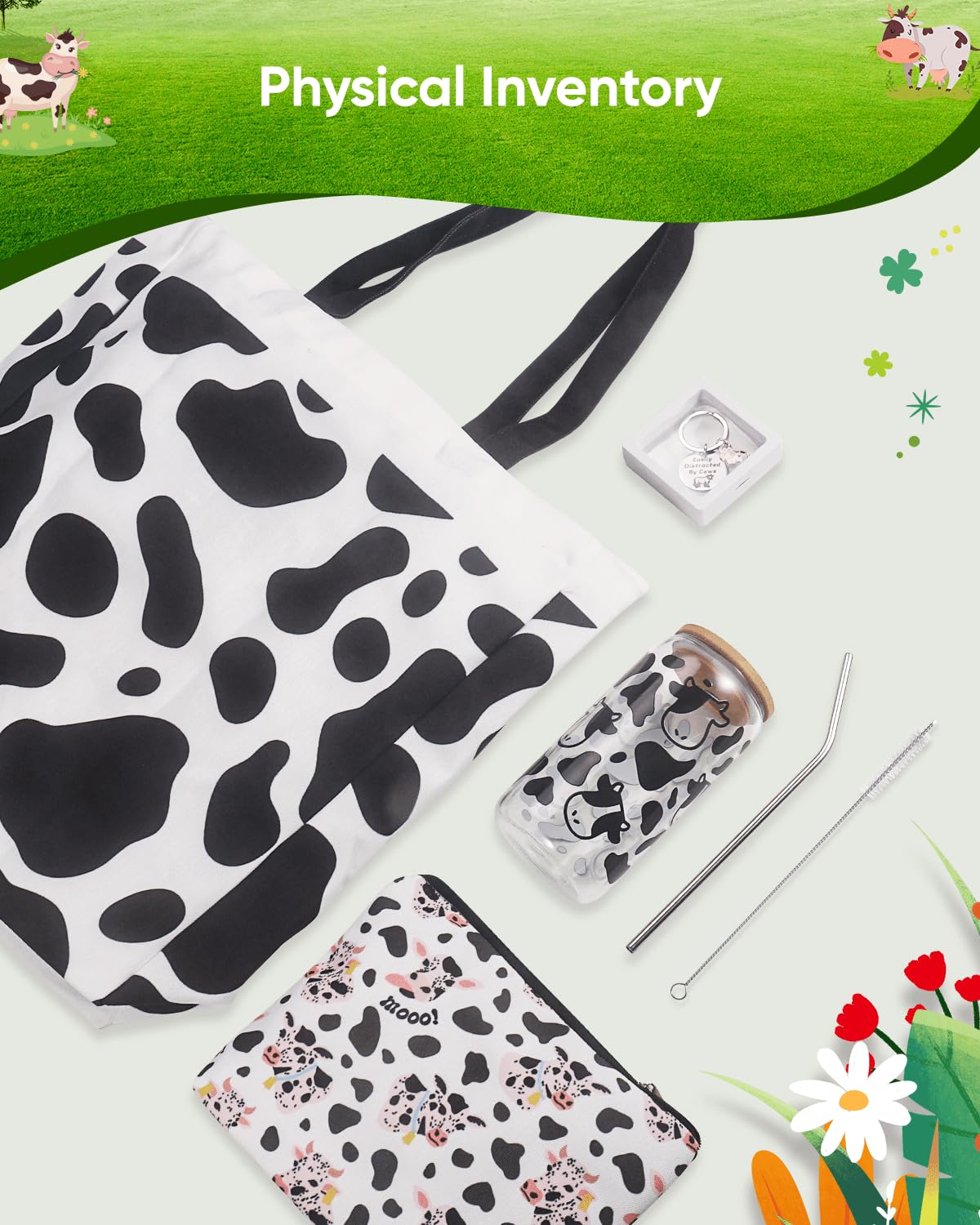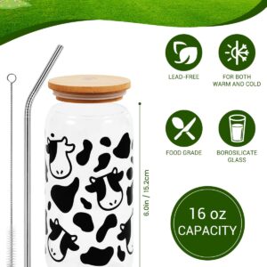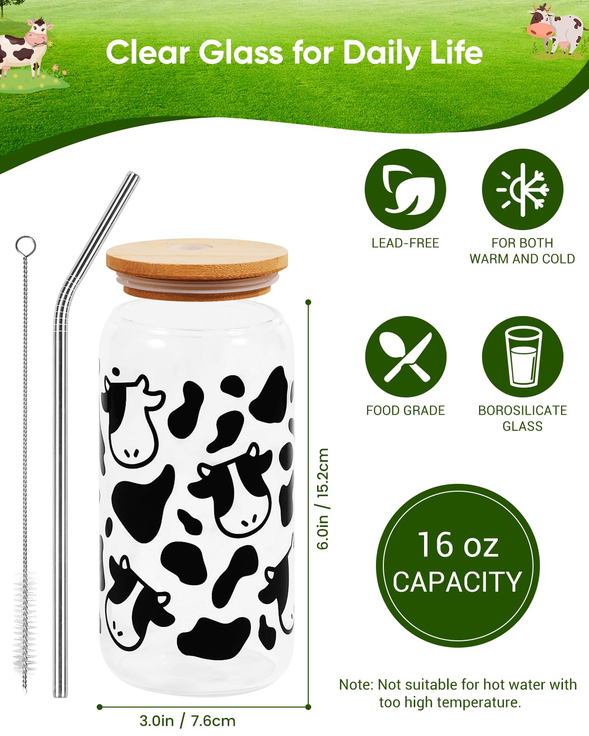 Cow birthday gifts set for girls, has a 16oz glass cup, crafted from high-quality, durable glass and features with printed with cow patterns.