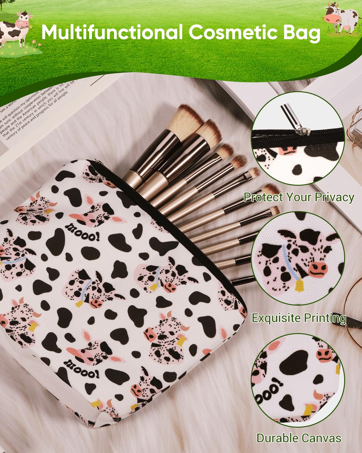 Cute cow makeup bag, made from sturdy and easy-to-clean canvas, this cosmetic bag is full printed with cow.