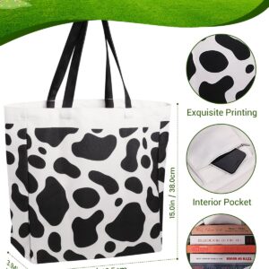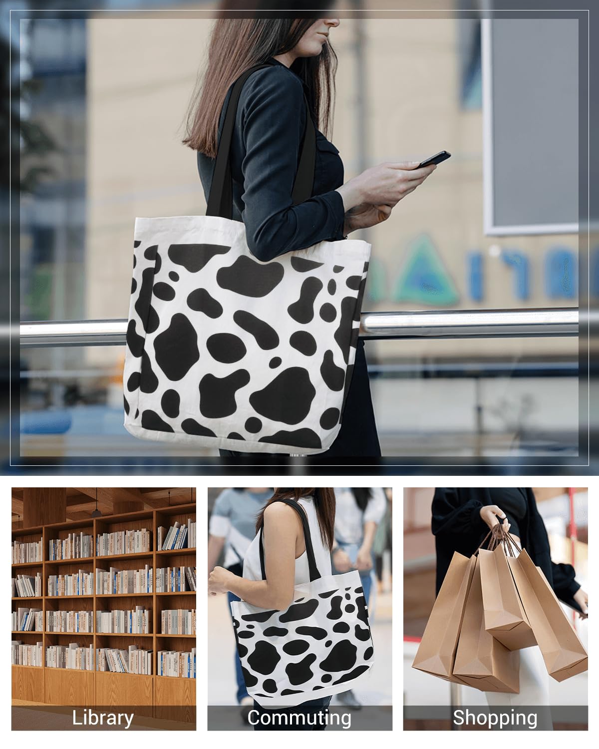 This cow tota bag, size 16 inch x 15 inch, made from high-quality canvas, this bag is both lightweight and sturdy, allowing you to carry heavy items without worrying about tearing or damage.With eye-catching printed patterns, this canvas bag will complement any casual outfit and make a statement.