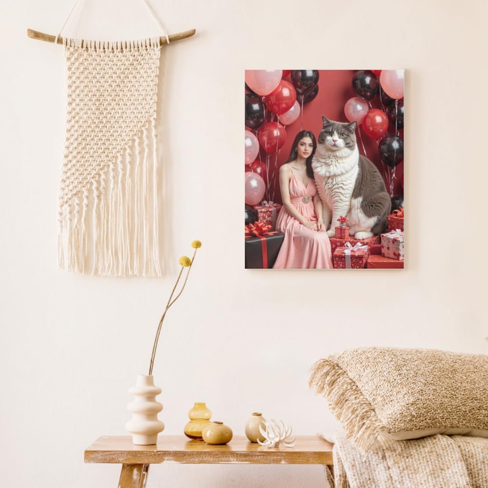 Custom Pet Portrait Wall Art Personalized Cat Poster Canvas with Owner Personalizadas para Pared Pet Portrait Painting for Room Decor Bathroom Pictures Living Room Bedroom Aesthetic