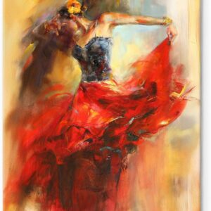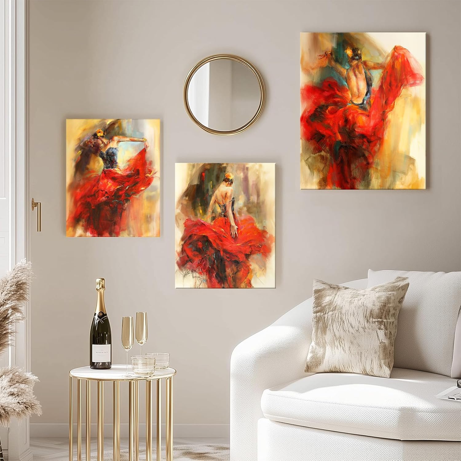 Dancing Lady Oil Paintings Spanish Flamenco Dancer Canvas Wall Painting, Elegant Woman Dancing in Red Dress Poster Print Framed Wall Decor for Living Room Bedroom Home, Ready to Hang 20″ x 24″