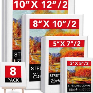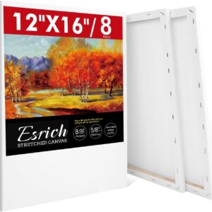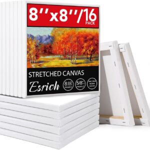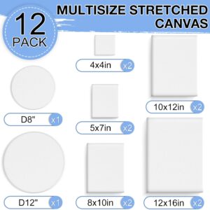 ESRICH 12 Pack Stretched Canvas for Painting, 4×4, 5×7, 8×10, 10×12, 12×16(2 of Each) Canvas and Round Canvas with 8×8, 12×12(1 of Each), Blank Canvases Primed Paint Canvas for Beginners, Artists.