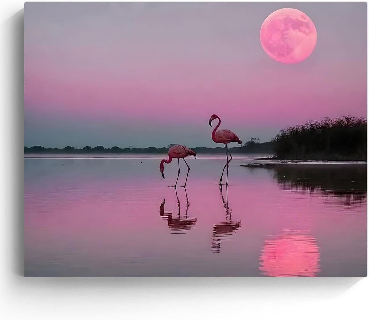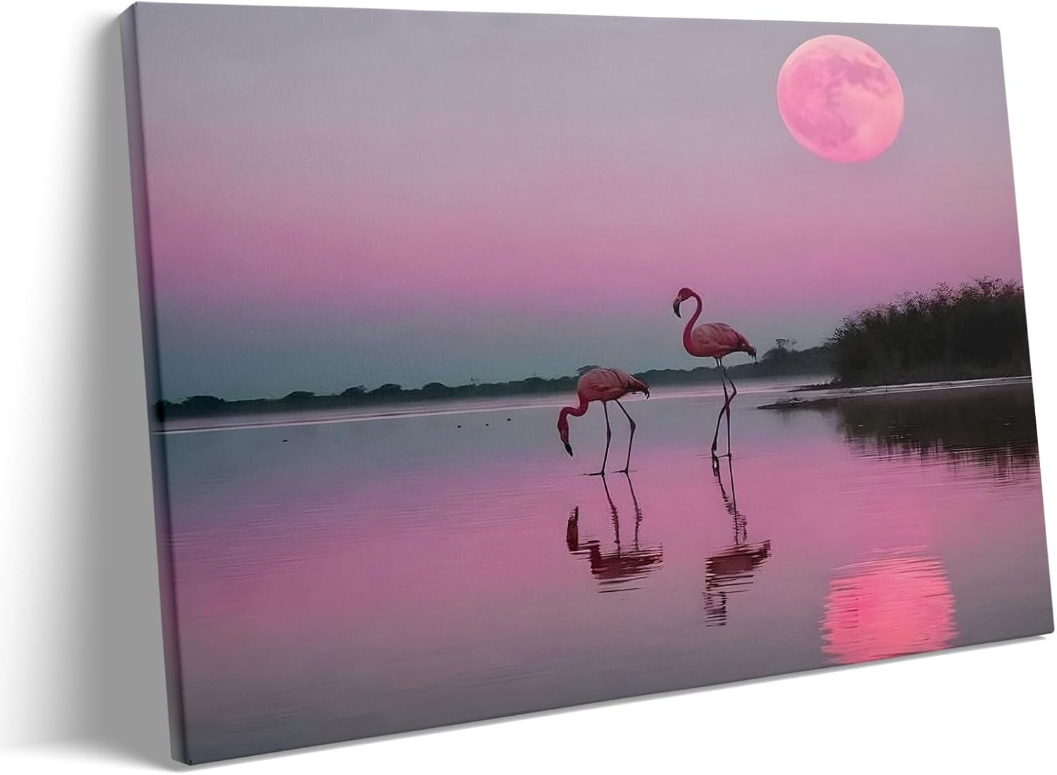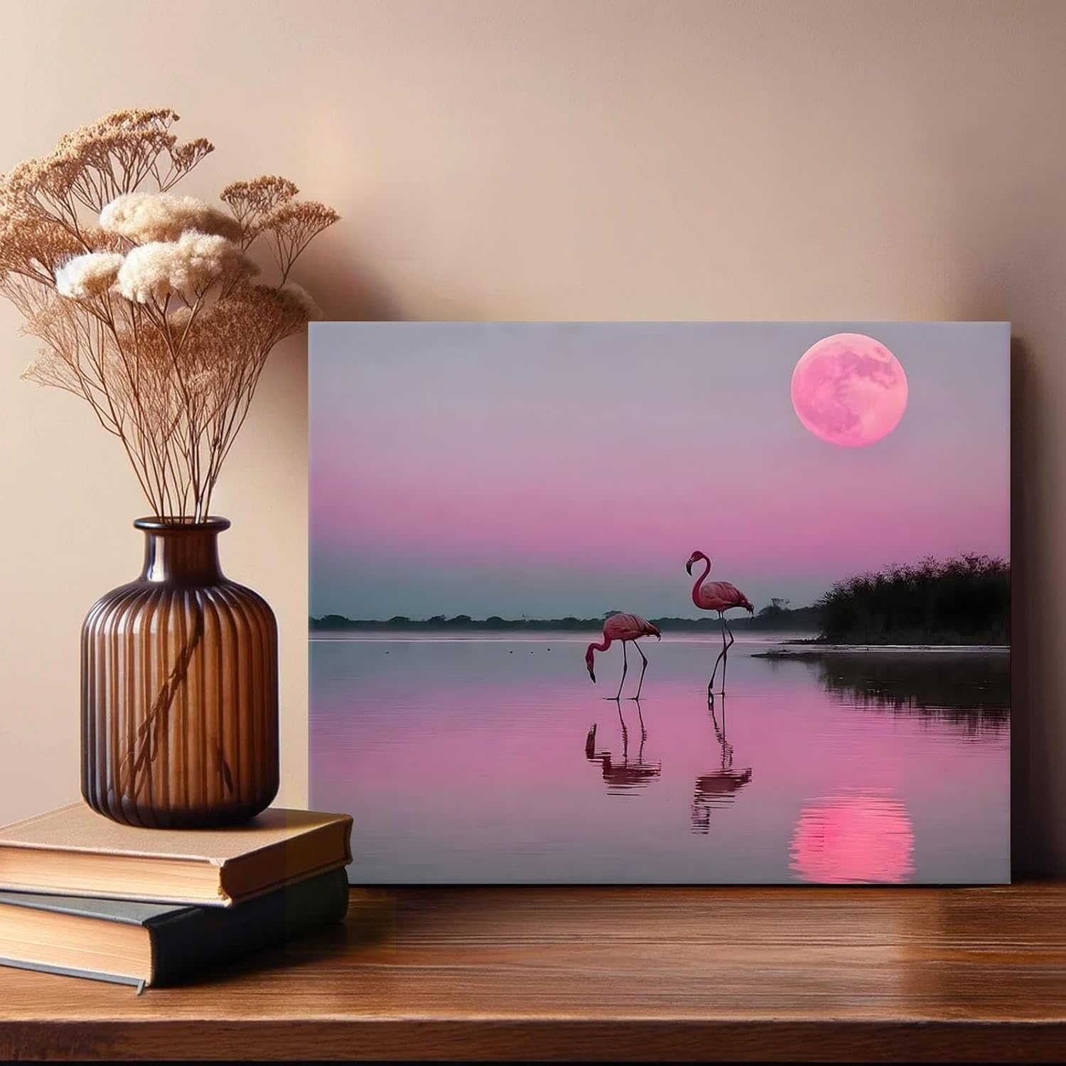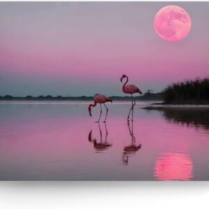 Flamingos Canvas Wall Art, Pink Flamingos at Sunset Pictures Print, Elegant Bird Poster Framed Artwork, Nature Inspired Landscape Wall Painting for Living Room and Bedroom Decor 24x30inch