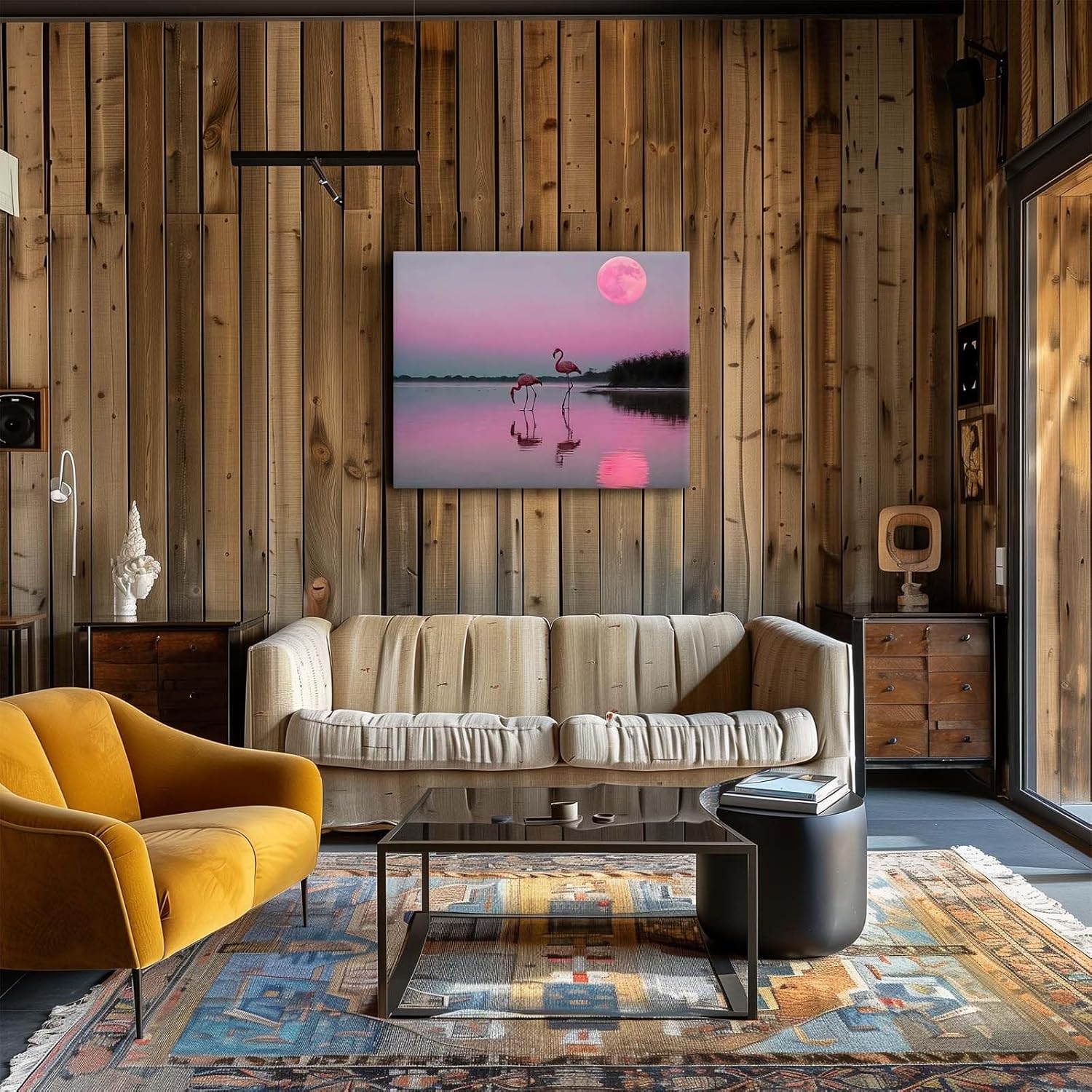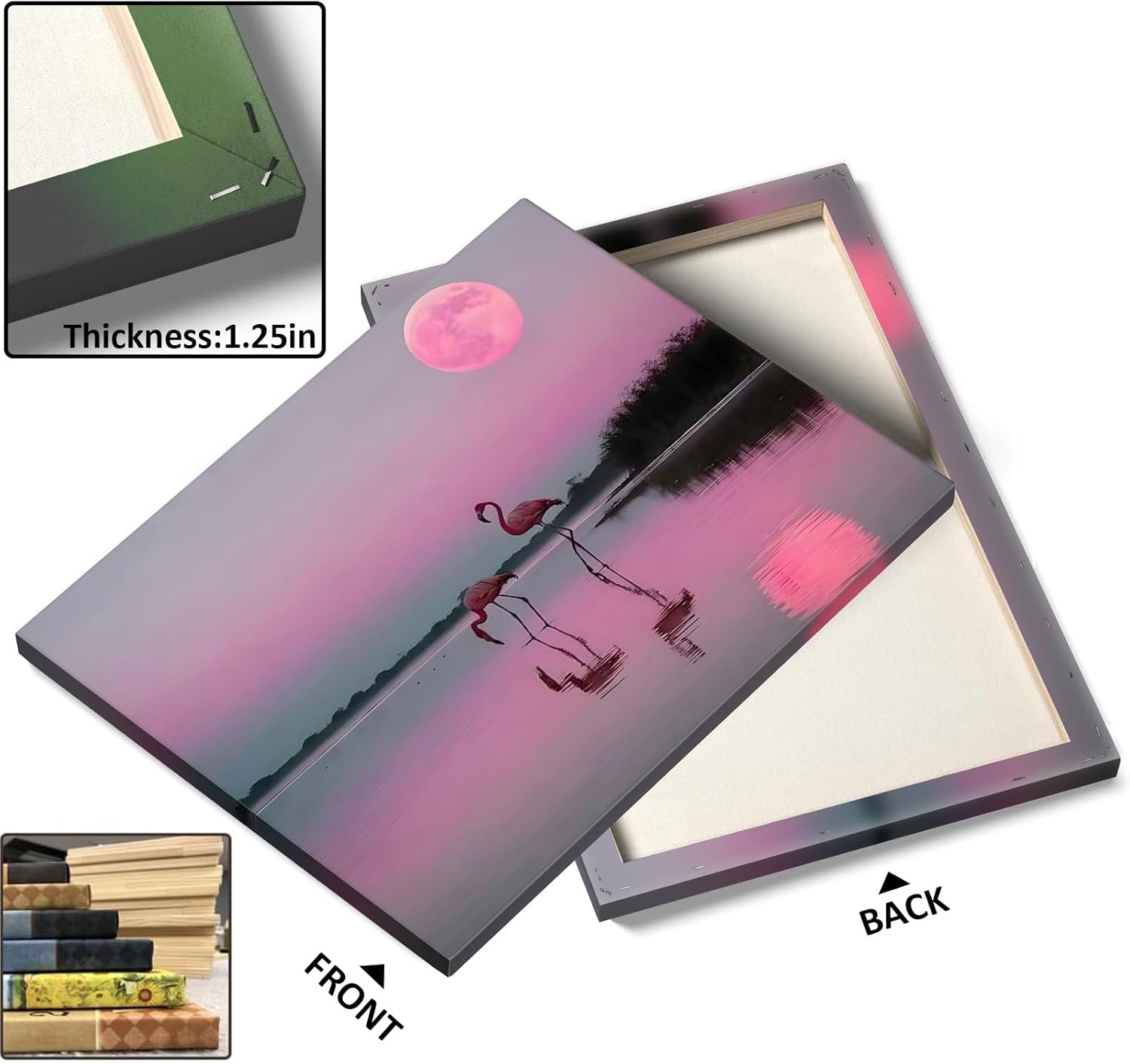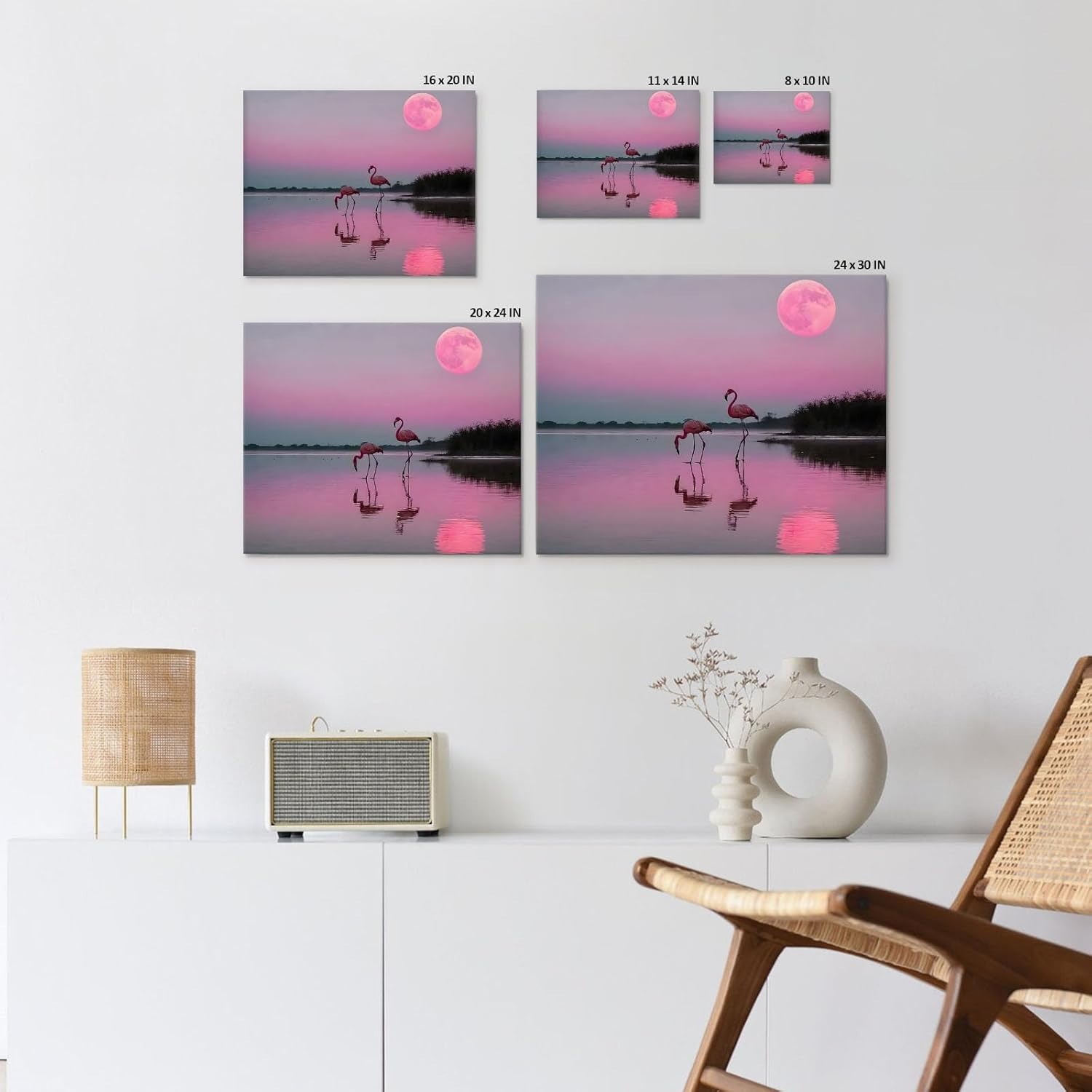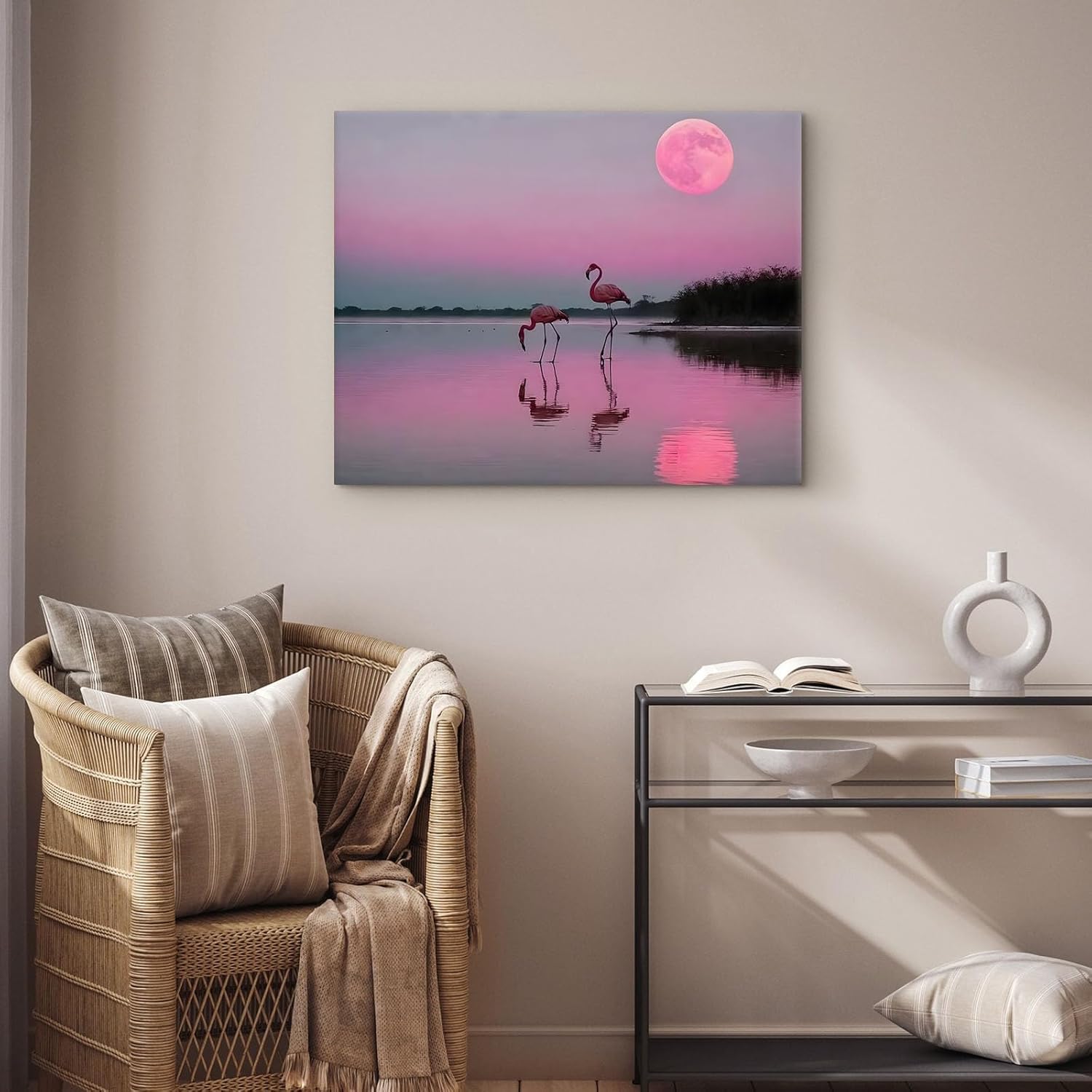 Flamingos Canvas Wall Art, Pink Flamingos at Sunset Pictures Print, Elegant Bird Poster Framed Artwork, Nature Inspired Landscape Wall Painting for Living Room and Bedroom Decor 24x30inch