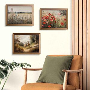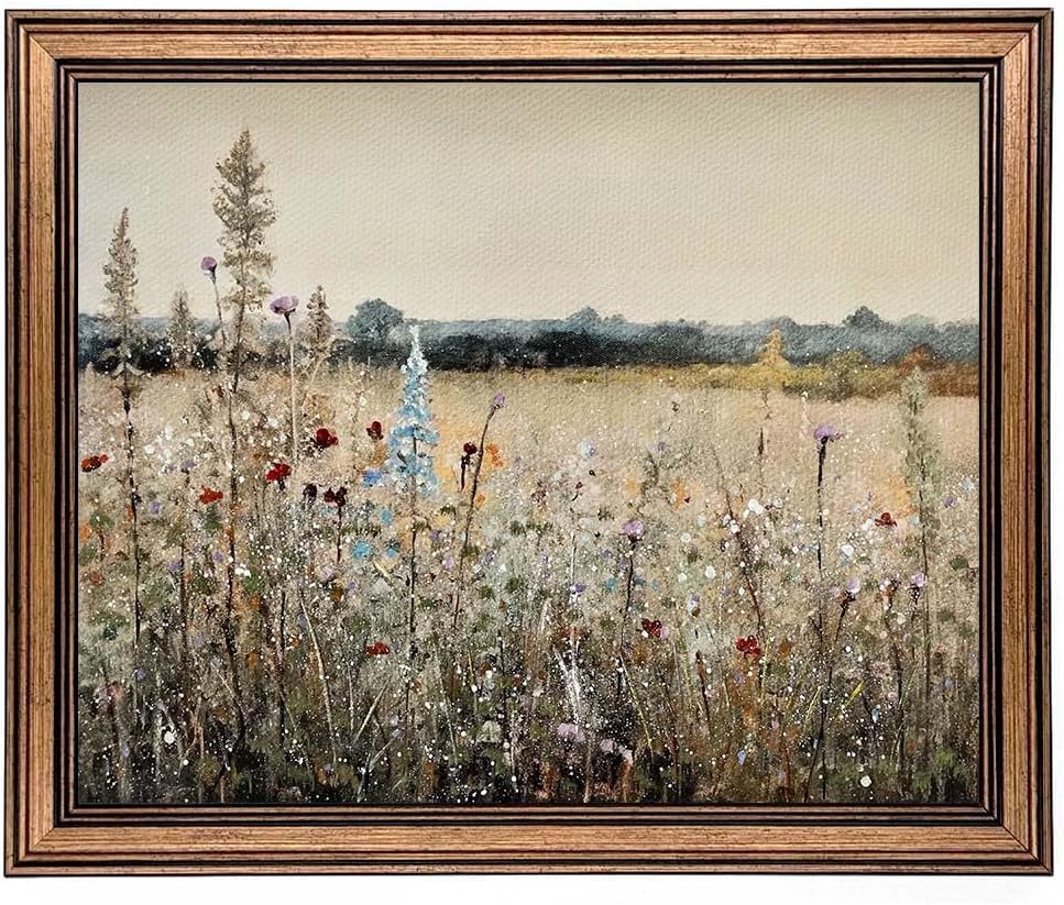 Gold Framed Vintage Wall Art Classical French Landscape Wildflowers Botanical Painting Canvas Print Kitchen Living Room Wall Decor (Champ Fleuri, 10L x 8W)