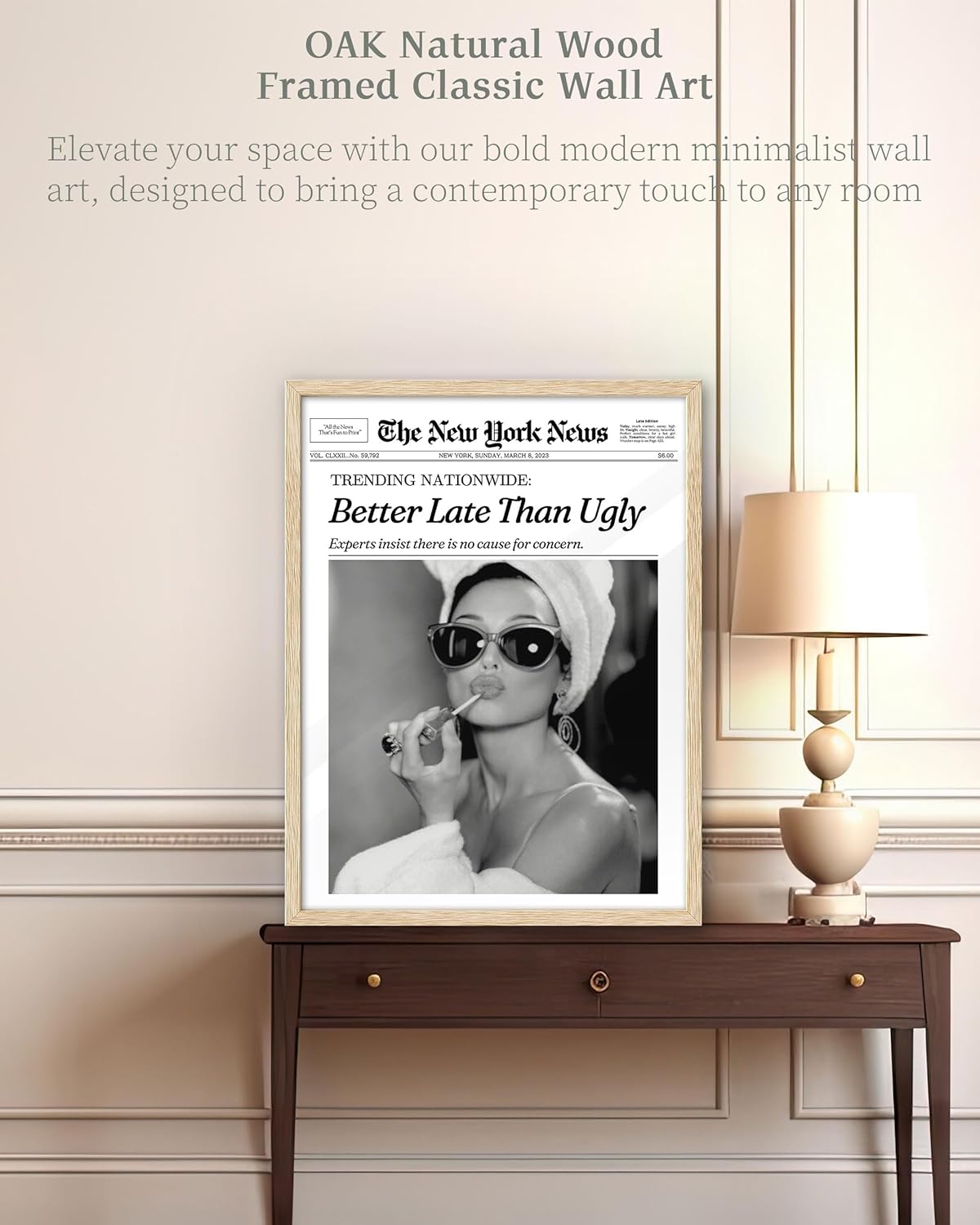 - Humorous 'Better Late Than Ugly' Quote: The witty and stylish 'Better Late Than Ugly' quote adds a playful element to your decor, making it a conversation starter and a fun addition to your wall art collection.