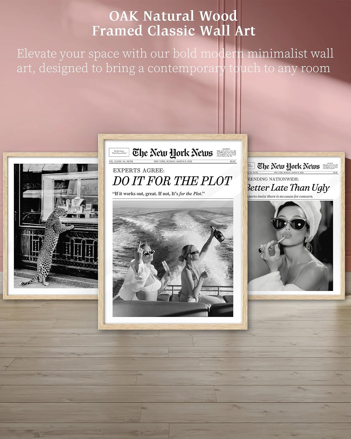 High-Quality Natural Oak Wood Frame: Crafted from premium natural oak wood, this frame adds a touch of elegance and durability to your wall art, ensuring it lasts for years.