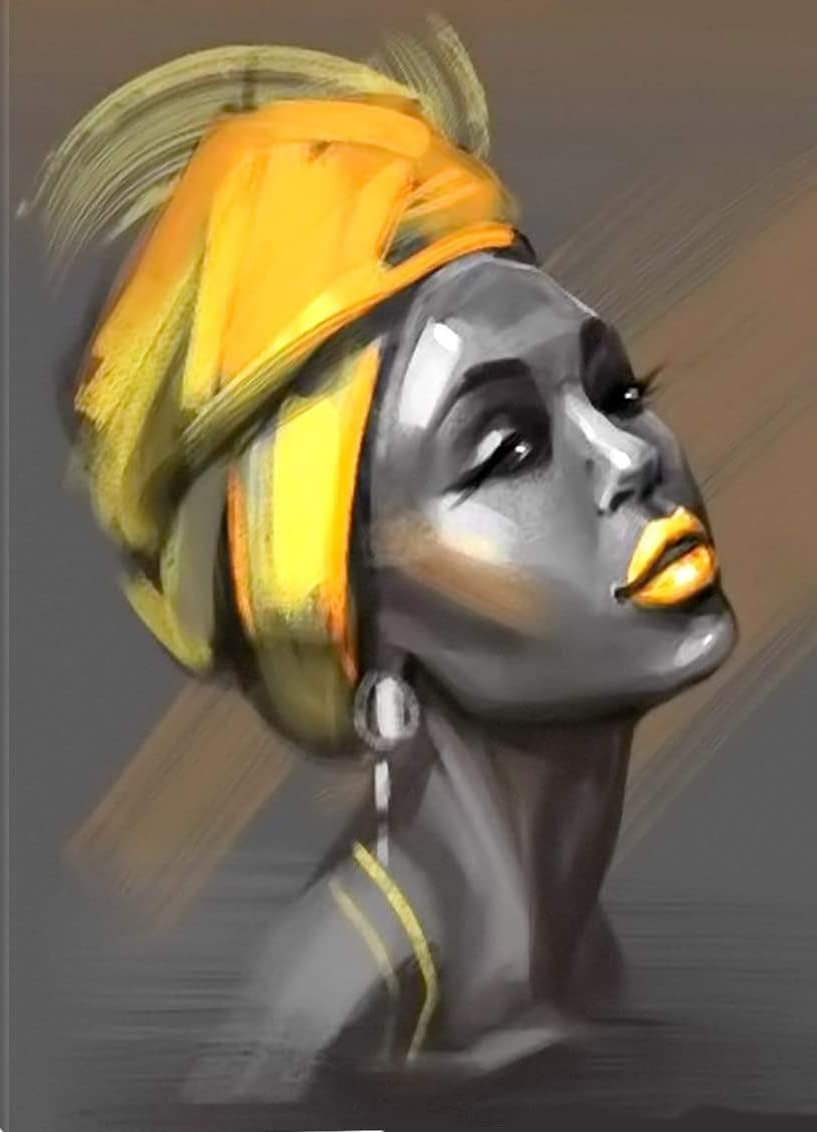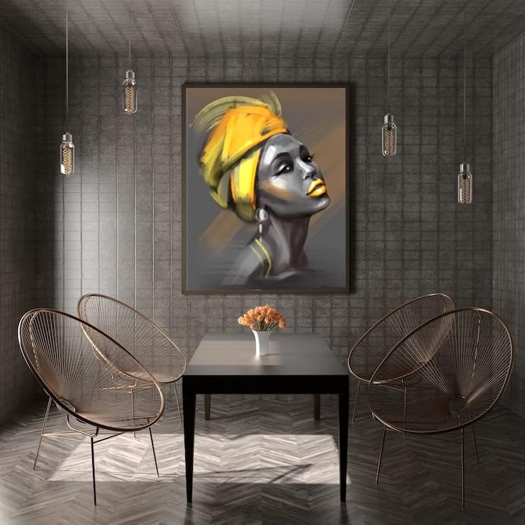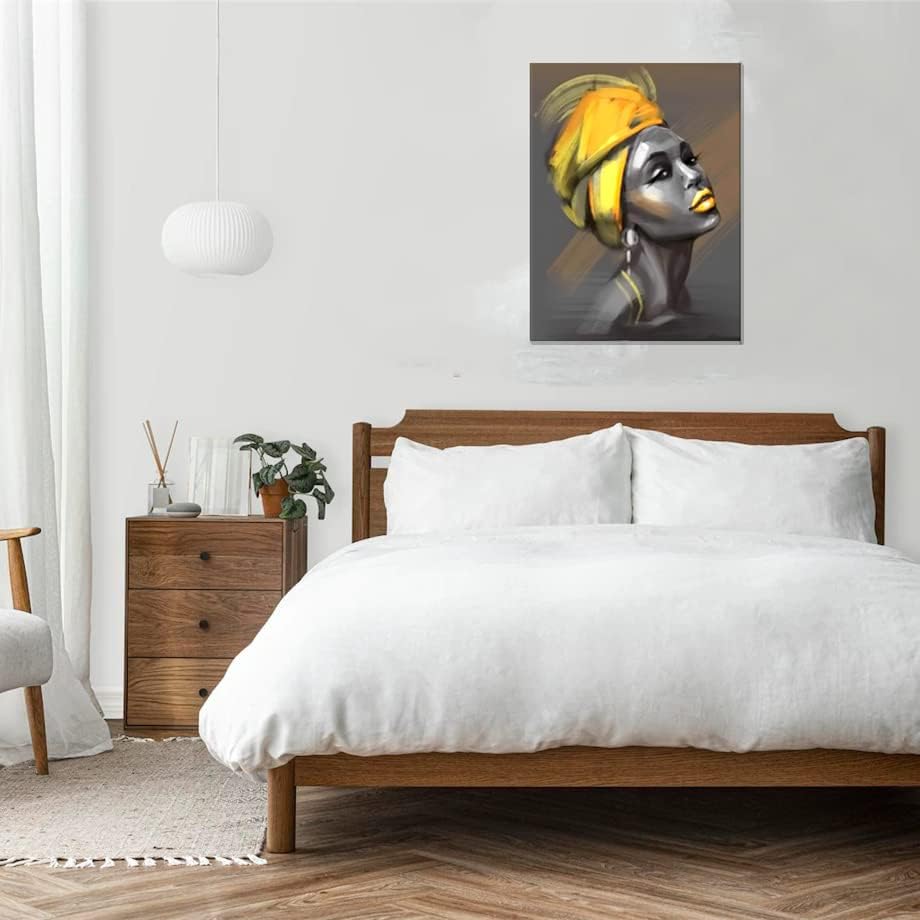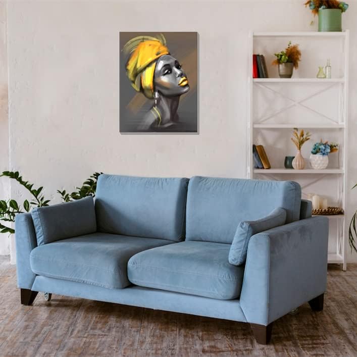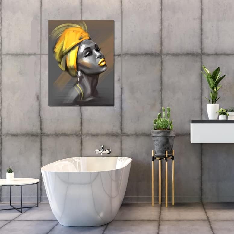LB African American Women Canvas Wall Art Black Woman Yellow Hair Beauty Abstract Painting Canvas Prints Living Room Bedroom Bathroom Framed Home Decor Ready to Hang, 16×24 inch