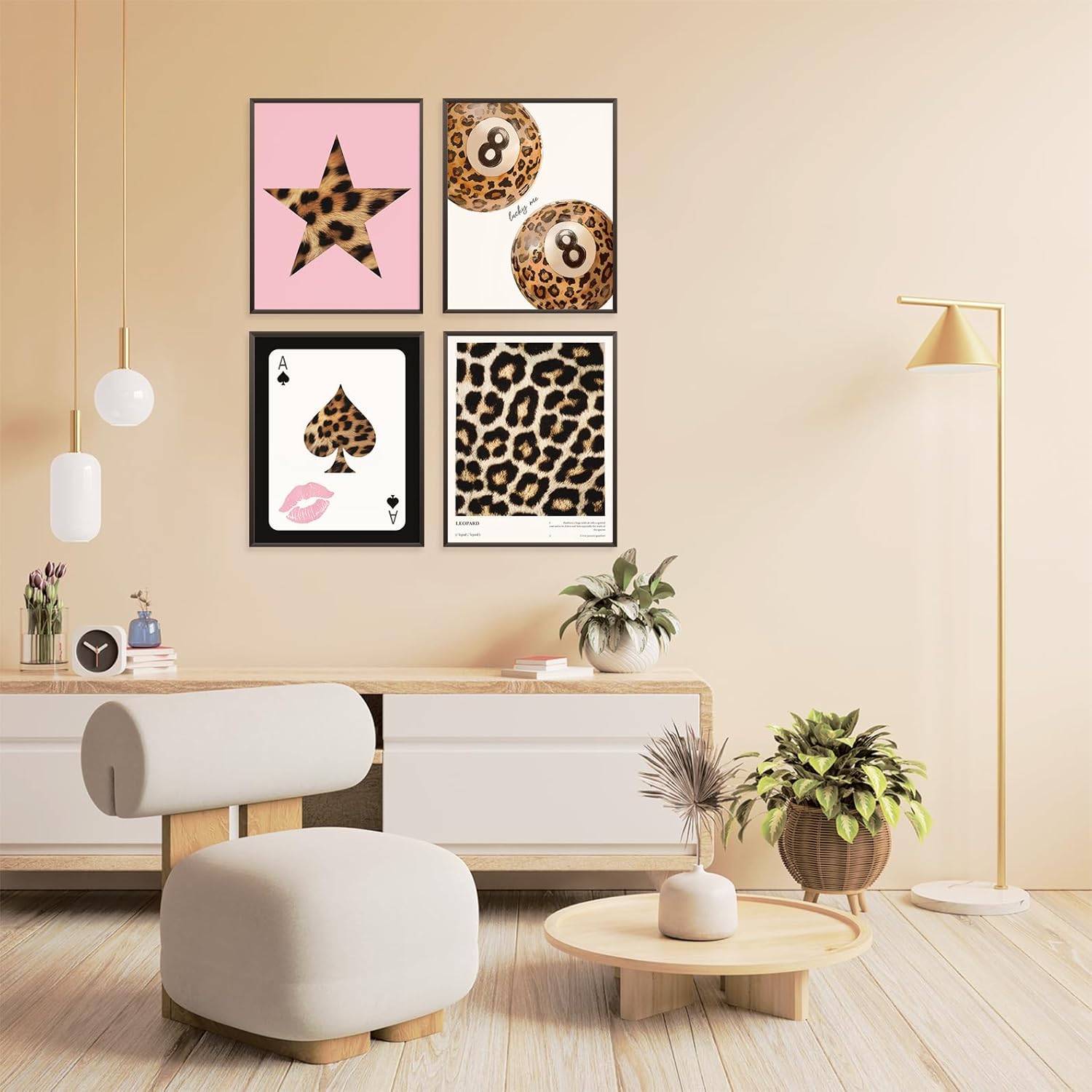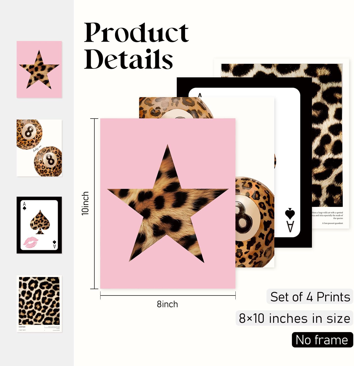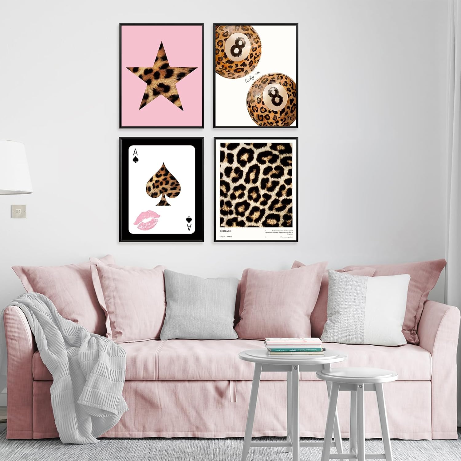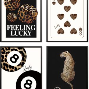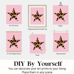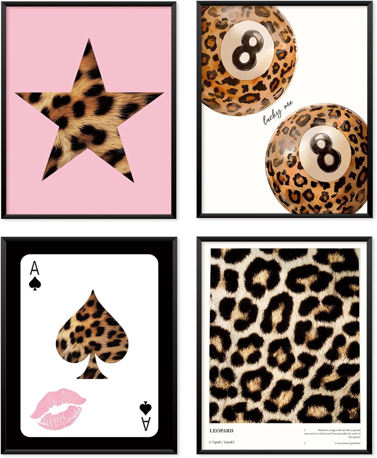 Locomiss Pink Leopard Wall Art Decor Posters, Trendy Y2K Leopard Girly Prints, Pink Funky Retro Cheetah Print Lucky 8 Ball Posters for Teen Girls Room College Dorm Decor, Set of 4 (8×10 Unframed)