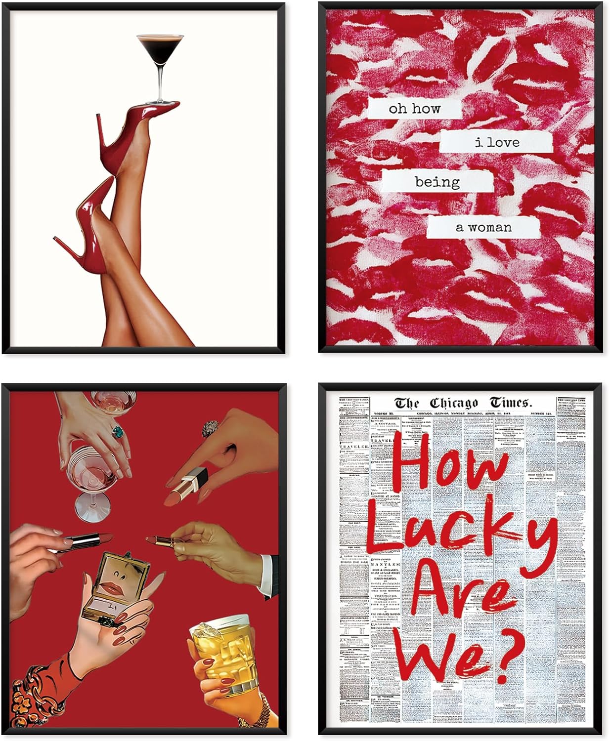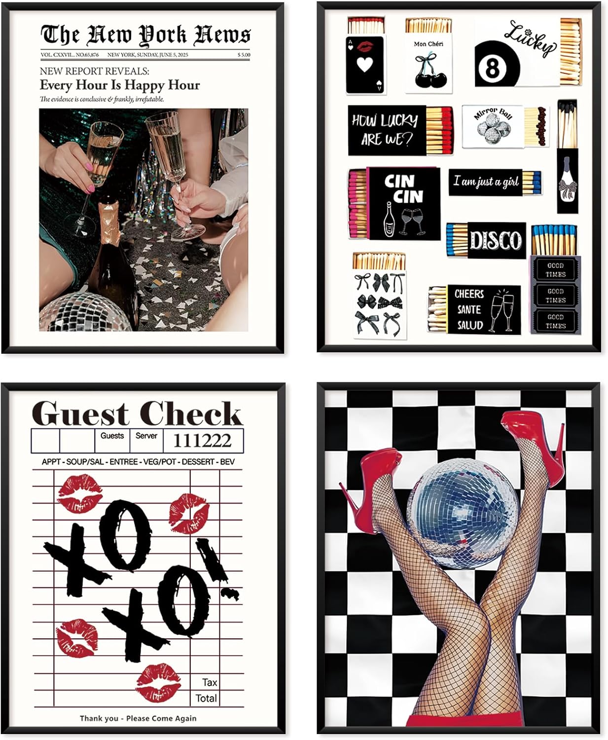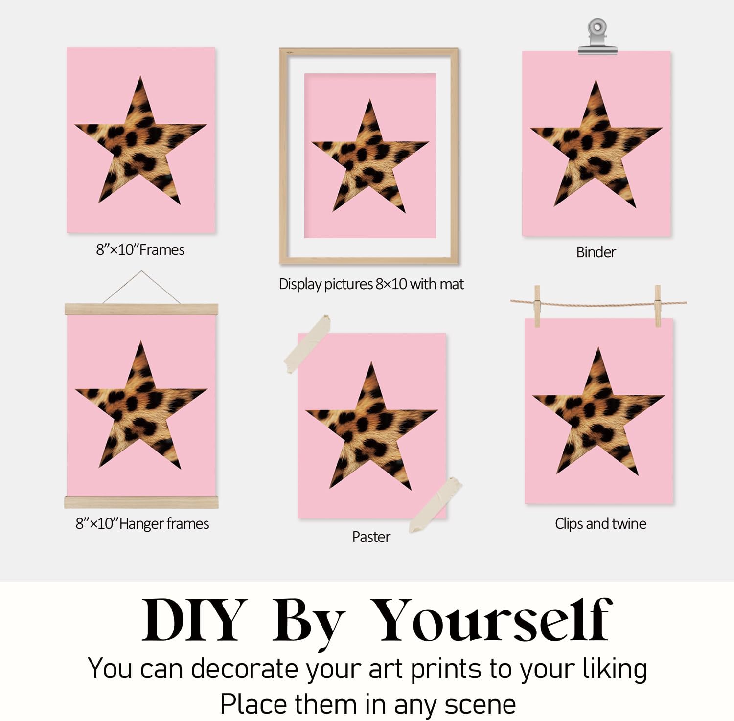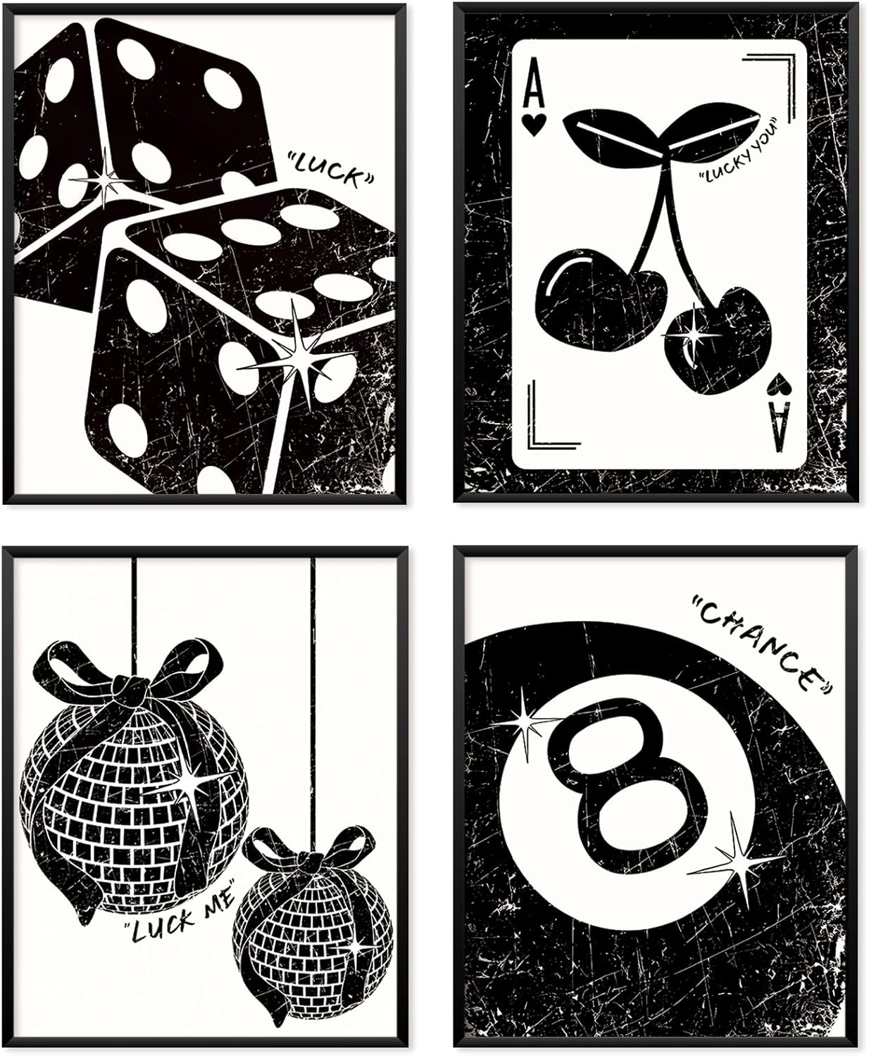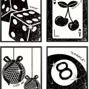 Locomiss Pink Leopard Wall Art Decor Posters, Trendy Y2K Leopard Girly Prints, Pink Funky Retro Cheetah Print Lucky 8 Ball Posters for Teen Girls Room College Dorm Decor, Set of 4 (8×10 Unframed)