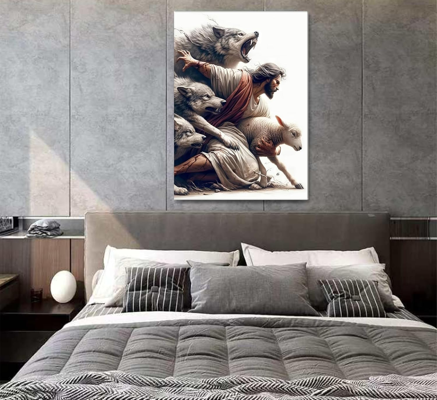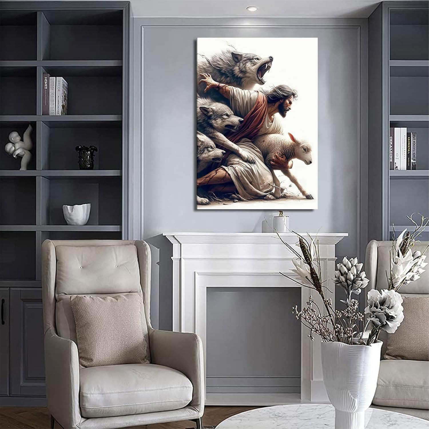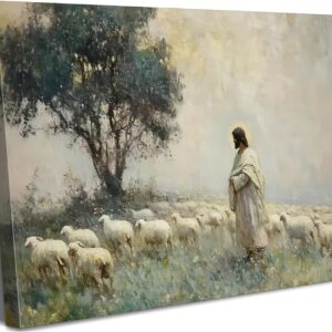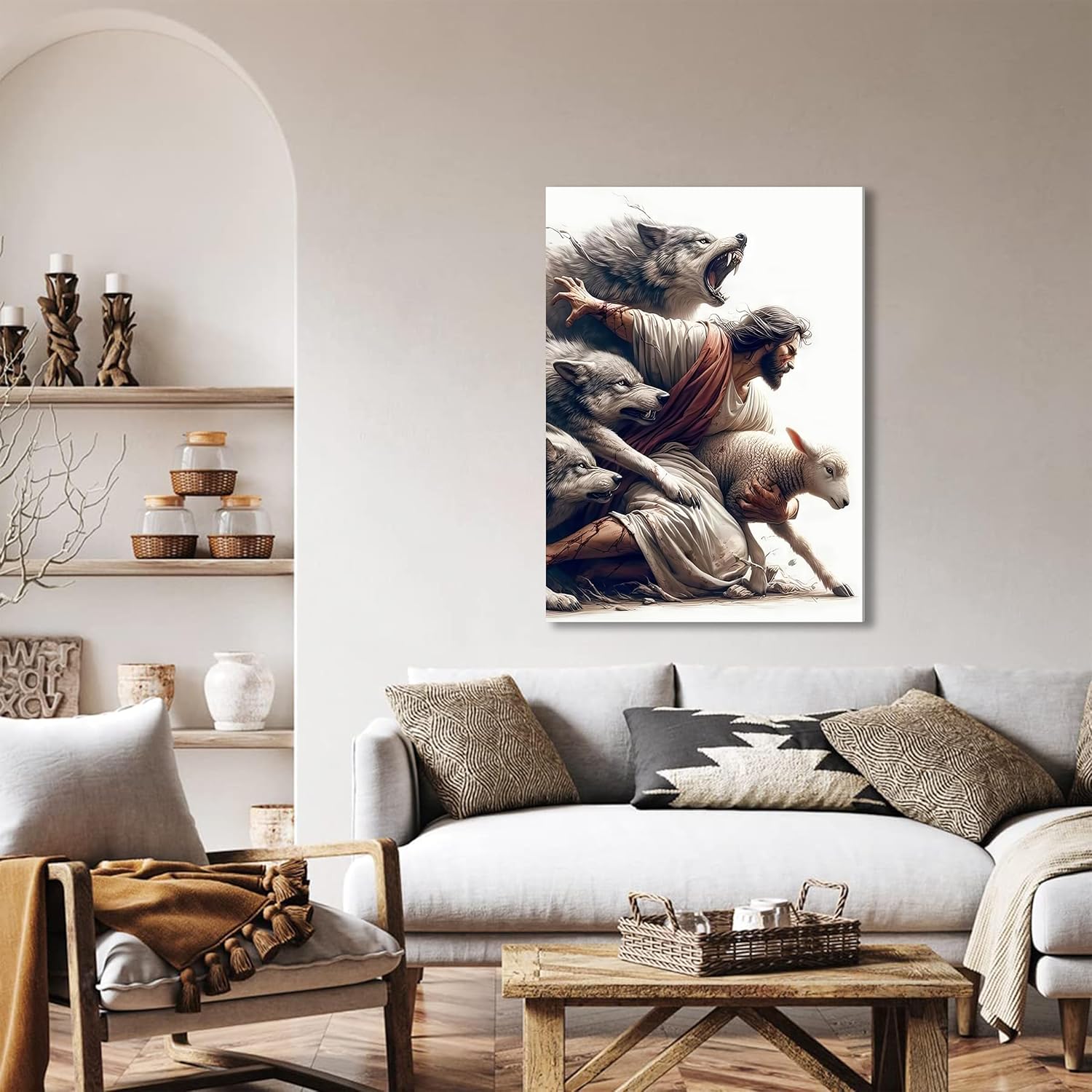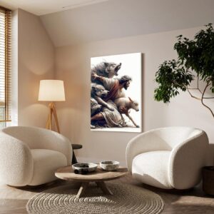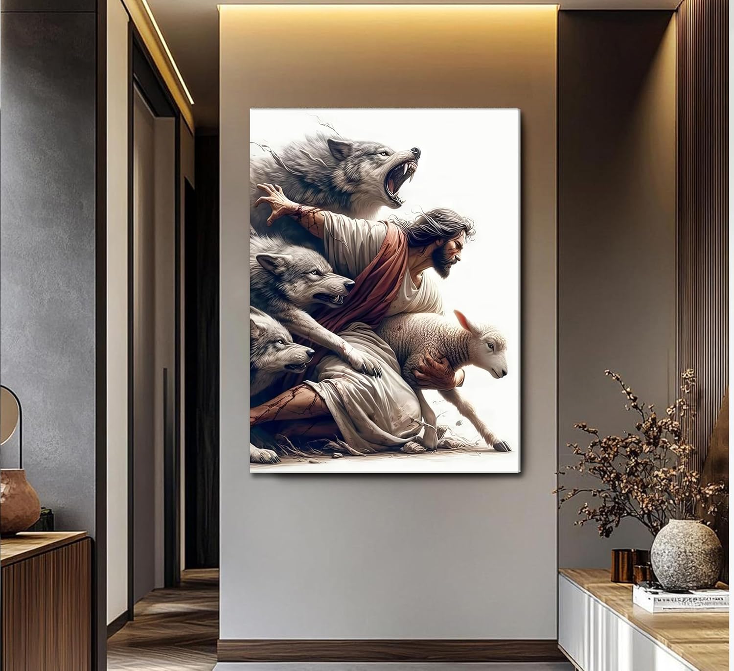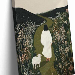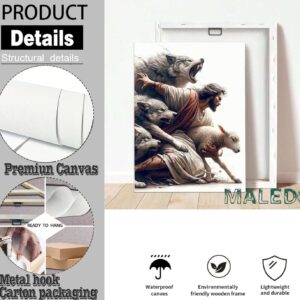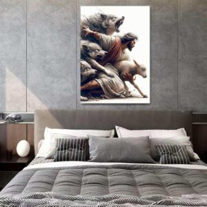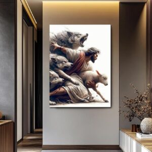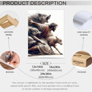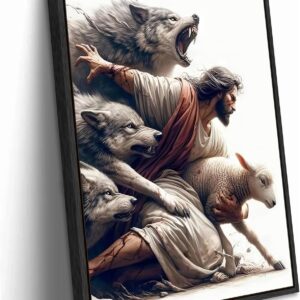Jesus Saves the Lost Lamb Picture Wall Decor Jesus Protect a Lamb from Wolves Painting