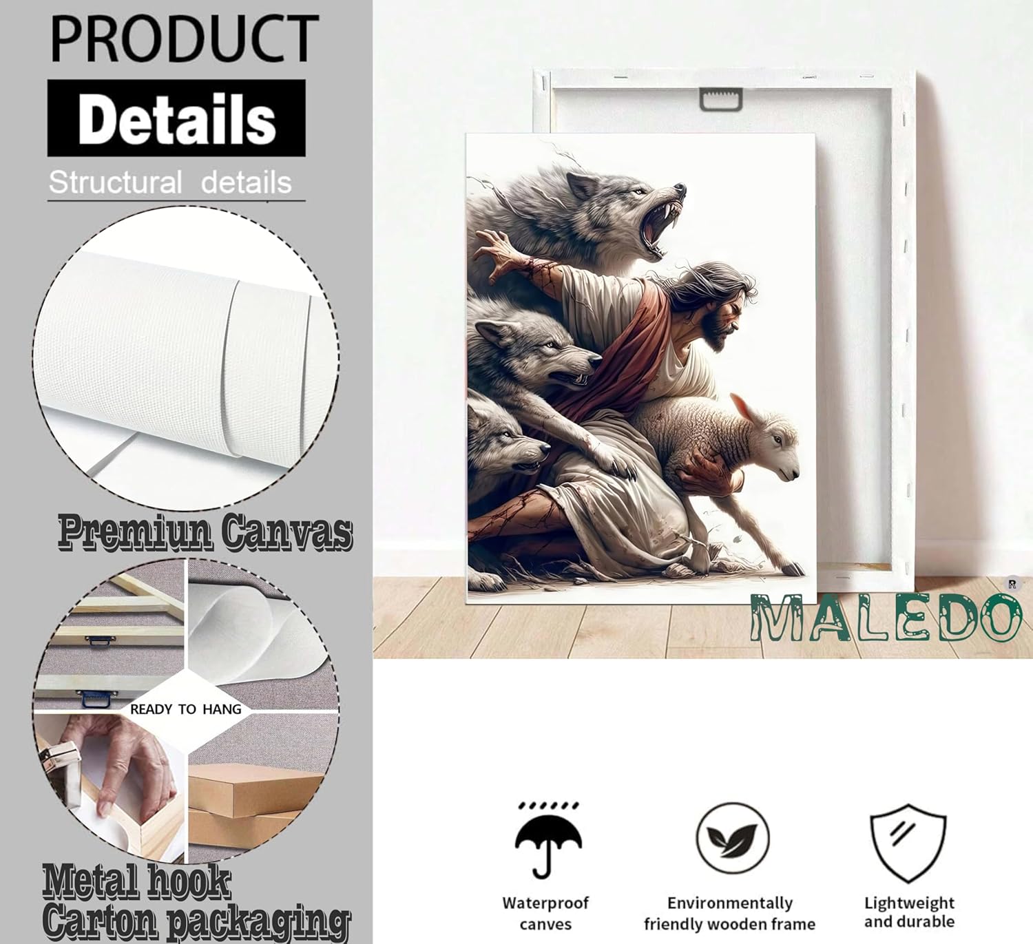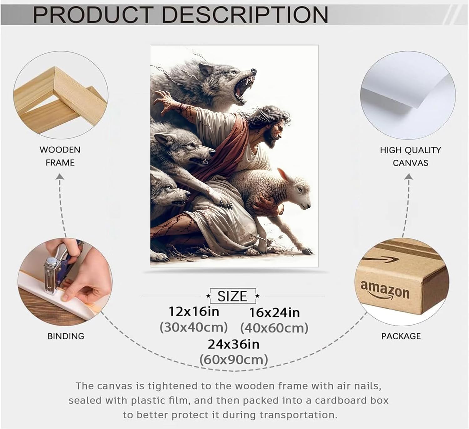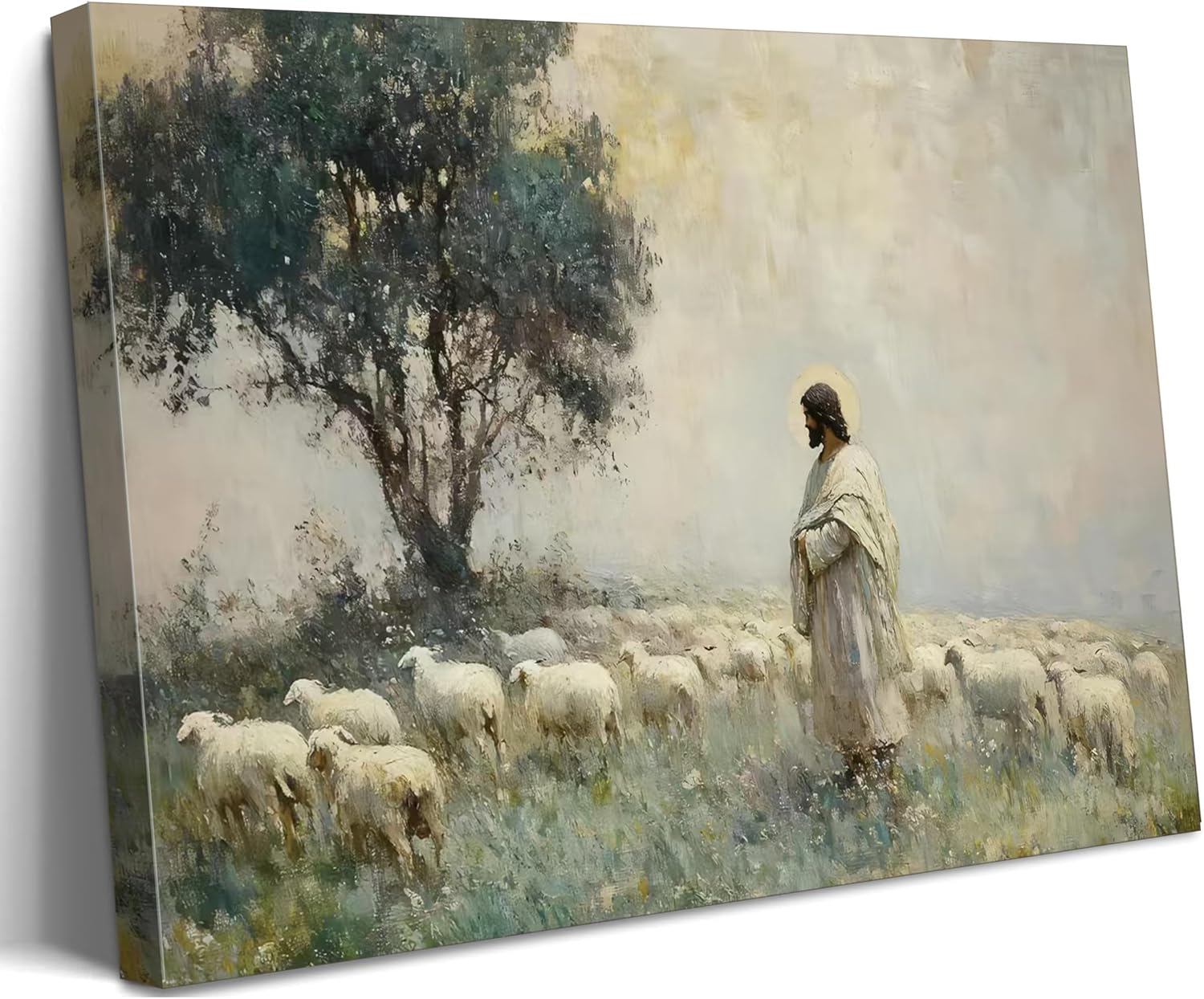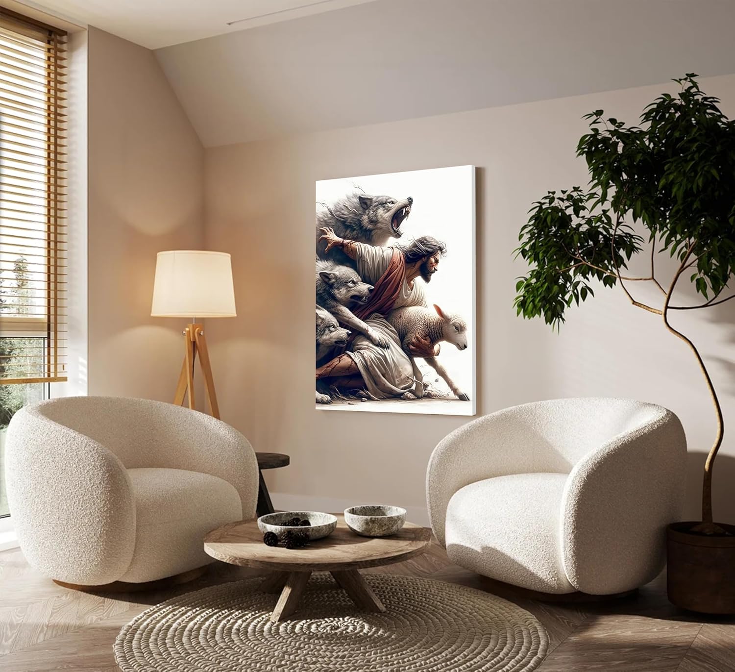 Jesus Saves the Lost Lamb Picture Wall Decor Jesus Protect a Lamb from Wolves Painting