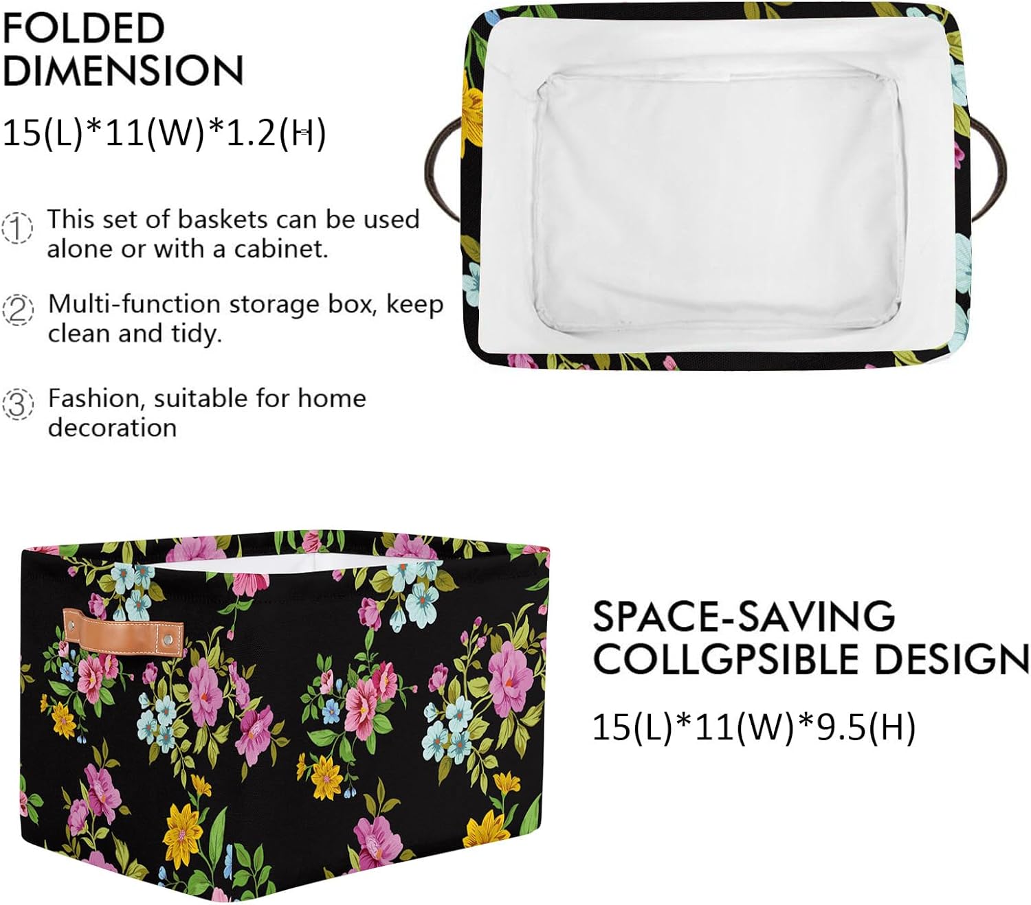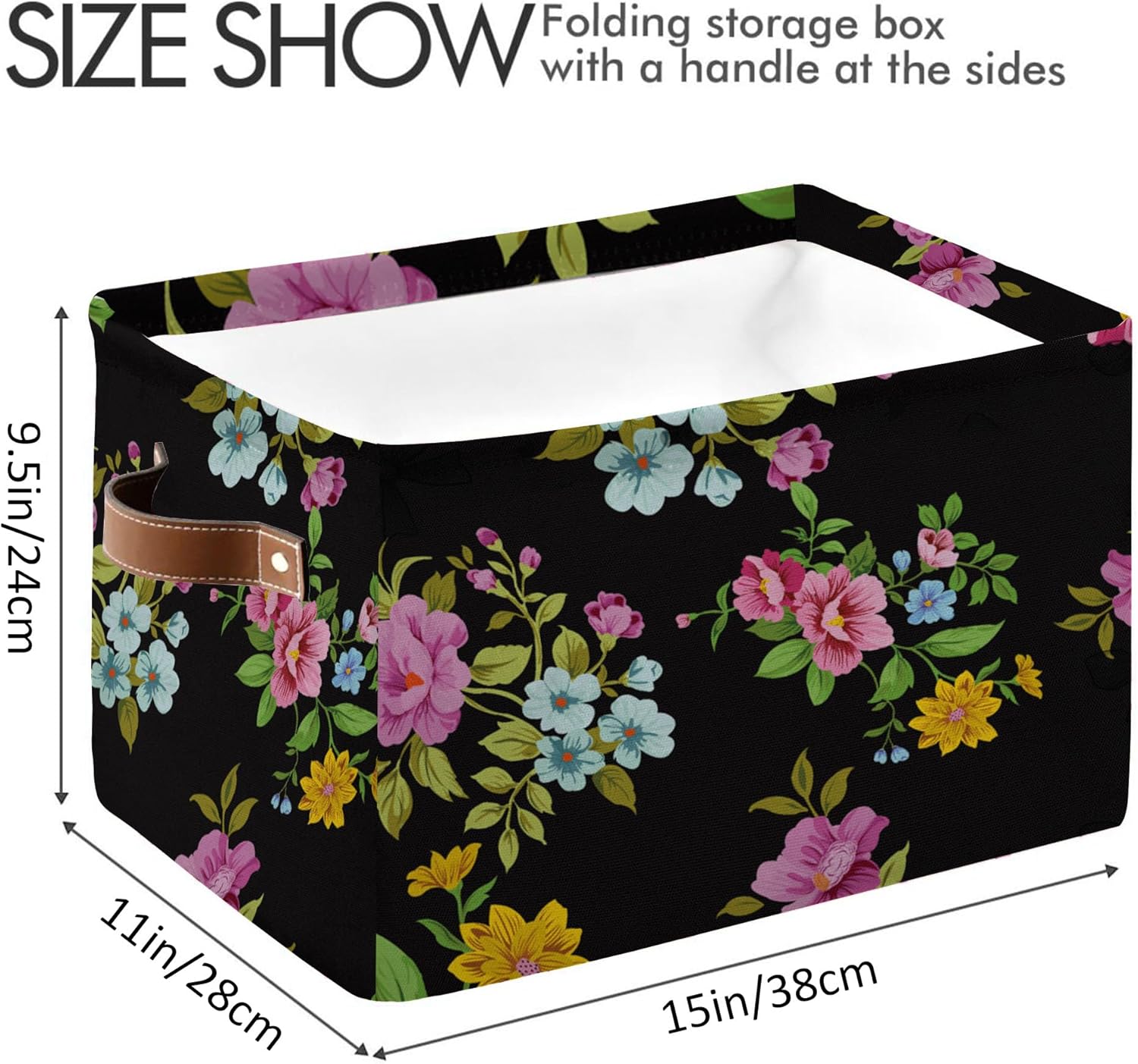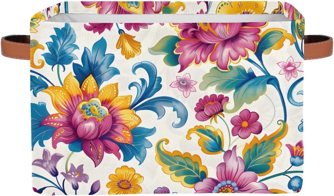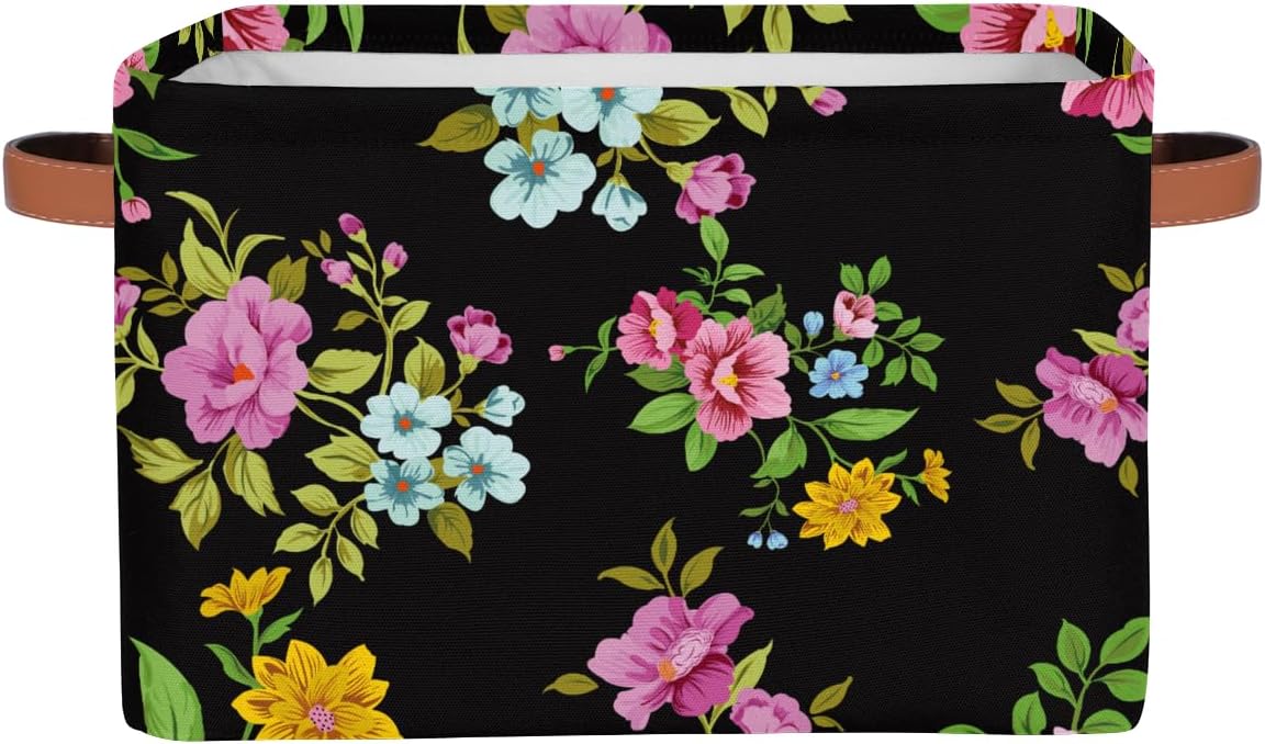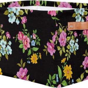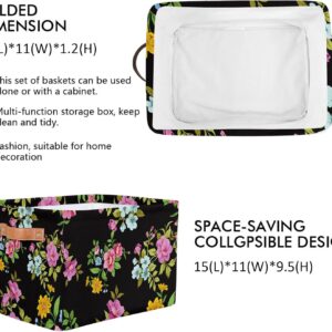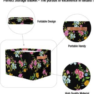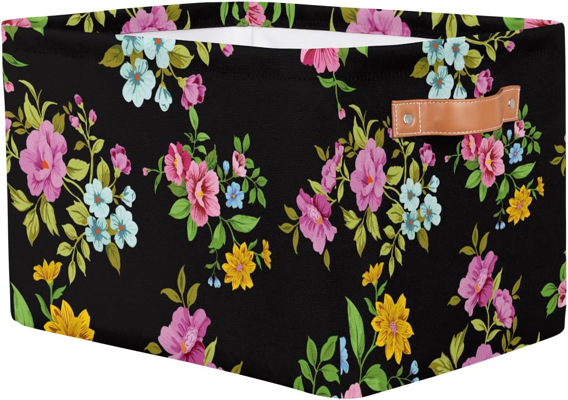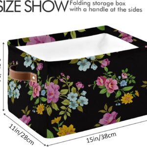 MARYHFENVA Storage Basket Bin, Retro Flower Floral Print Large Cube Storage Box Canvas Collapsible Storage Organizer for Home Office Closet,Christmas Decoration – 15 L x 11 W x 9.5 H