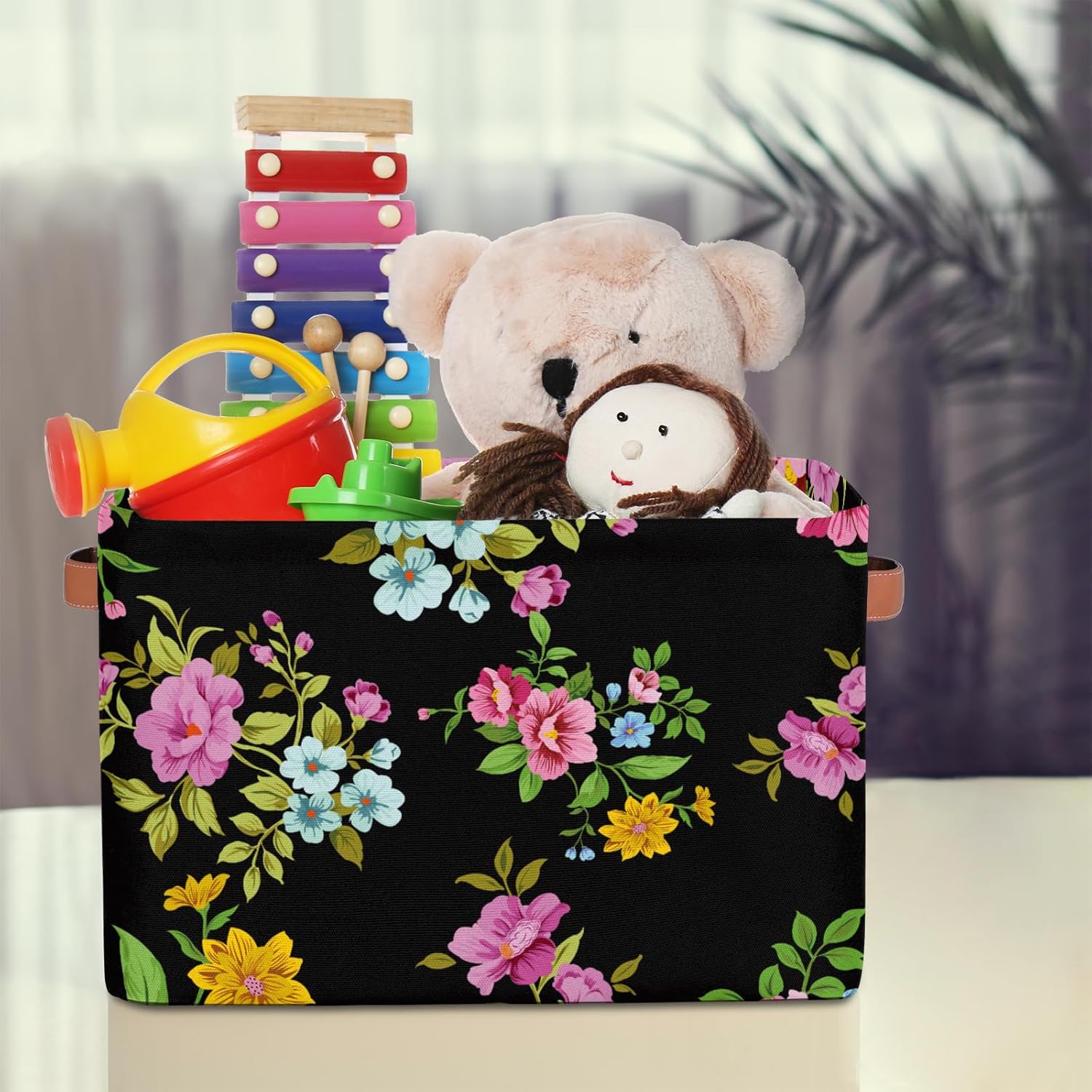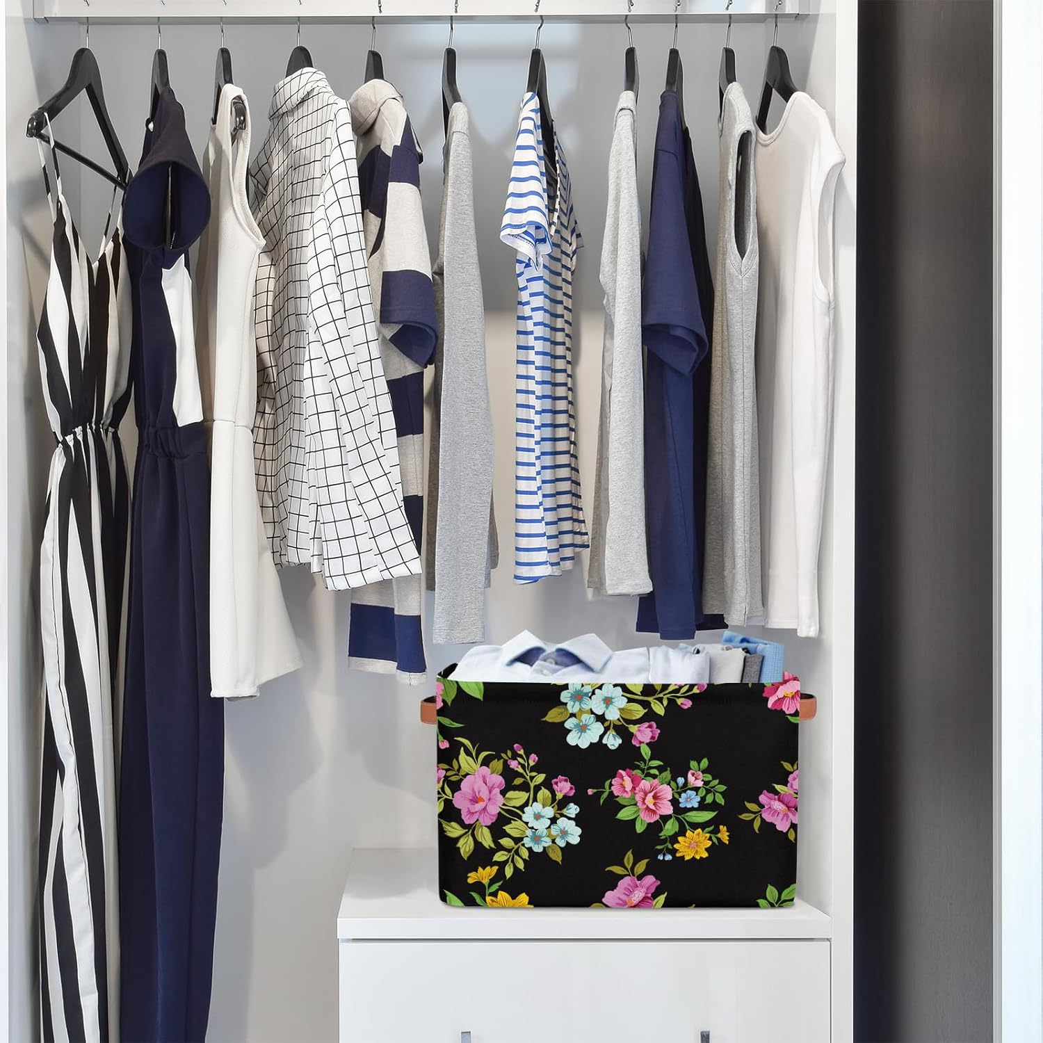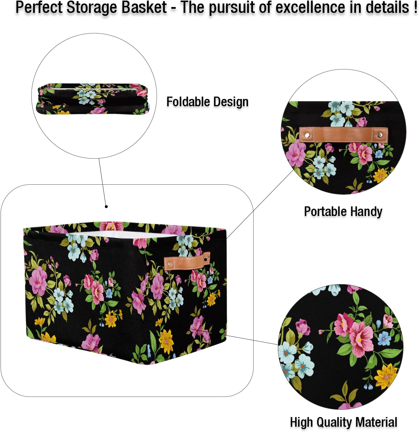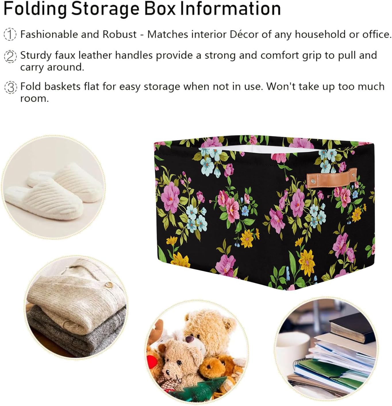 MARYHFENVA Storage Basket Bin, Retro Flower Floral Print Large Cube Storage Box Canvas Collapsible Storage Organizer for Home Office Closet,Christmas Decoration – 15 L x 11 W x 9.5 H
