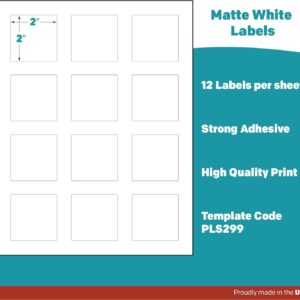 Premium Label Supply White Sticker Square Labels with Bleed \u2013 2″ x 2″ \u2013 Laser\/Inkjet Compatible \u2013 (12 per Sheet), 500 Sheets \u2013 6,000 Total Adhesive Labels
