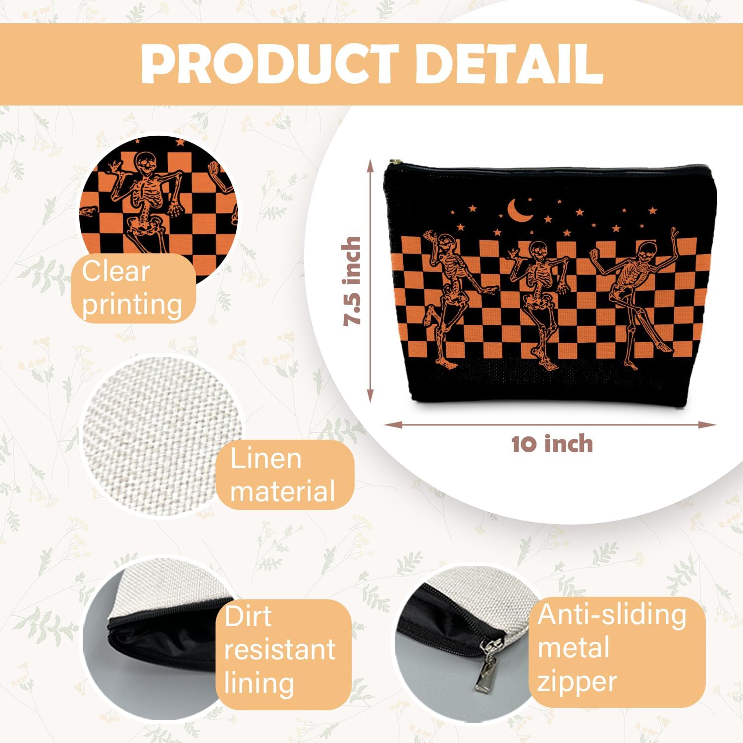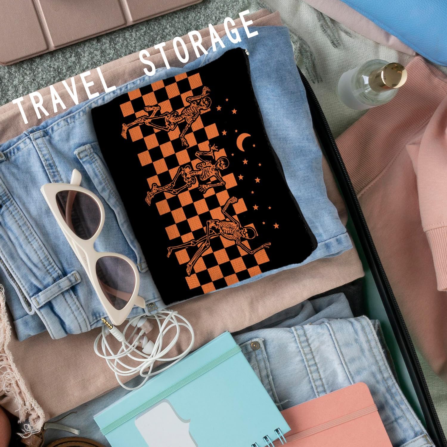 RYYCDOI Gothic Skeleton Makeup Pouch – Halloween & Dark Academia Witchy Accessory, Cool Horror Gift for Women