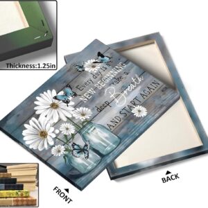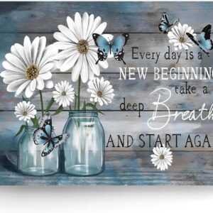 Sunwes Inspirational Canvas Wall Art, Every Day is a New Beginning with Daisies Butterflies Pictures Print, Motivational Quote Print Artwork, Rustic Wall Decor for Living Room and Bedroom 11x14inch