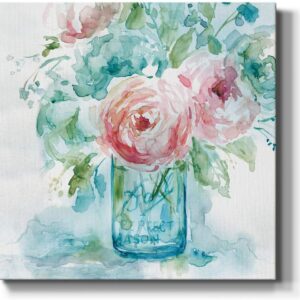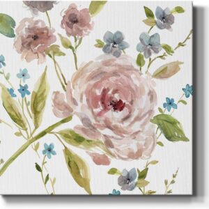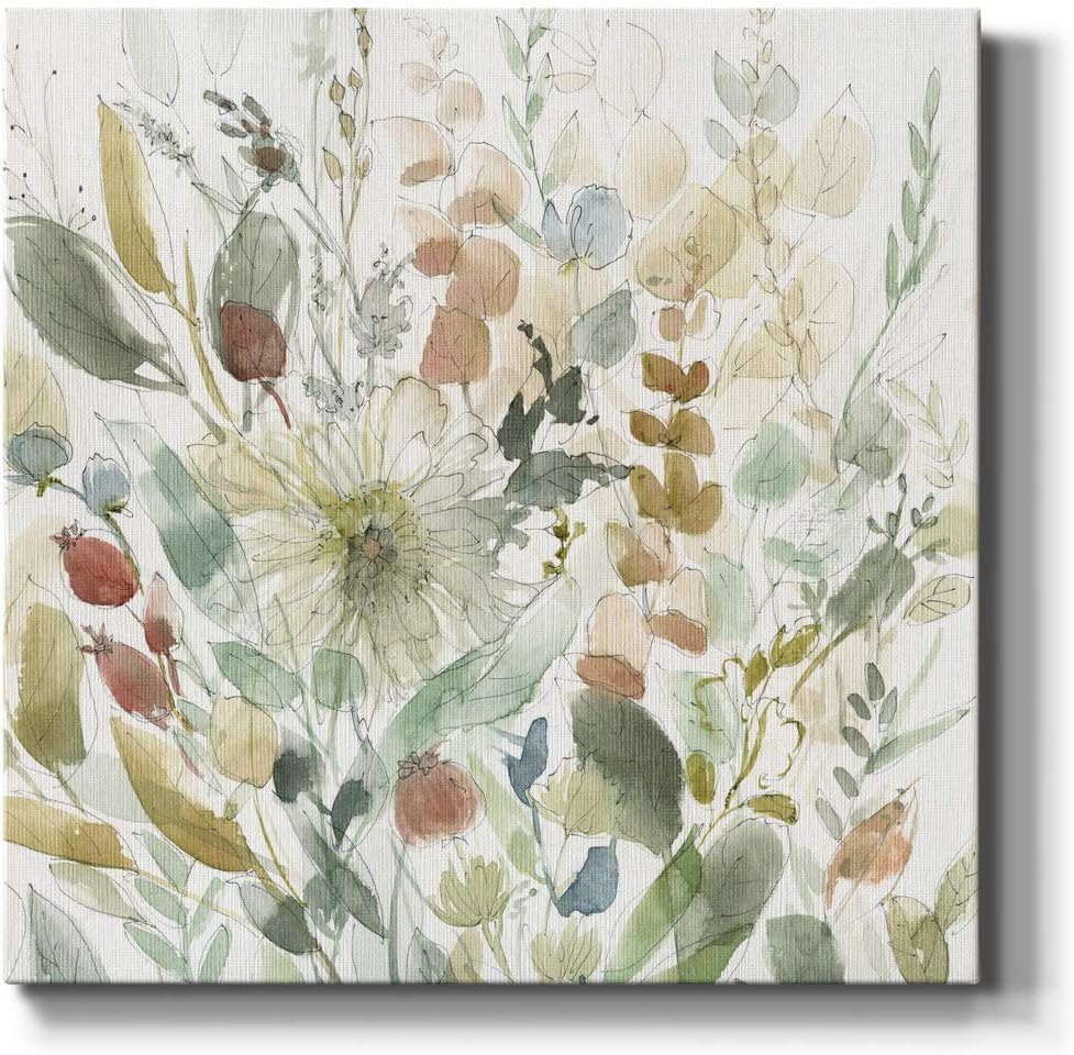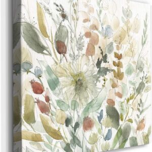 Wexford Home Square Premium Gallery Wrapped Canvas Flower Multicolor Wall Art Abstract Floral Romance Modern Pictures Print for Office, Ready to Hang, linen wildflower garden
